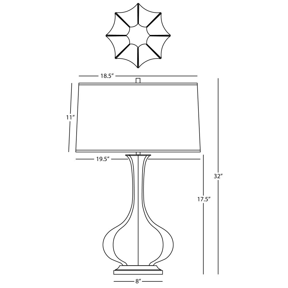 Our Pike table lamp will liven up your space with its unique design that incorporates an elongated neck sweeping down into an elegantly scalloped base. Available in an extensive range of colors, you're sure to find one that completes your space flawlessly - Matte Midnight Blue Glazed Ceramic with Aged Brass Accents Pike Table Lamp with Pearl Dupoini Fabric Shade