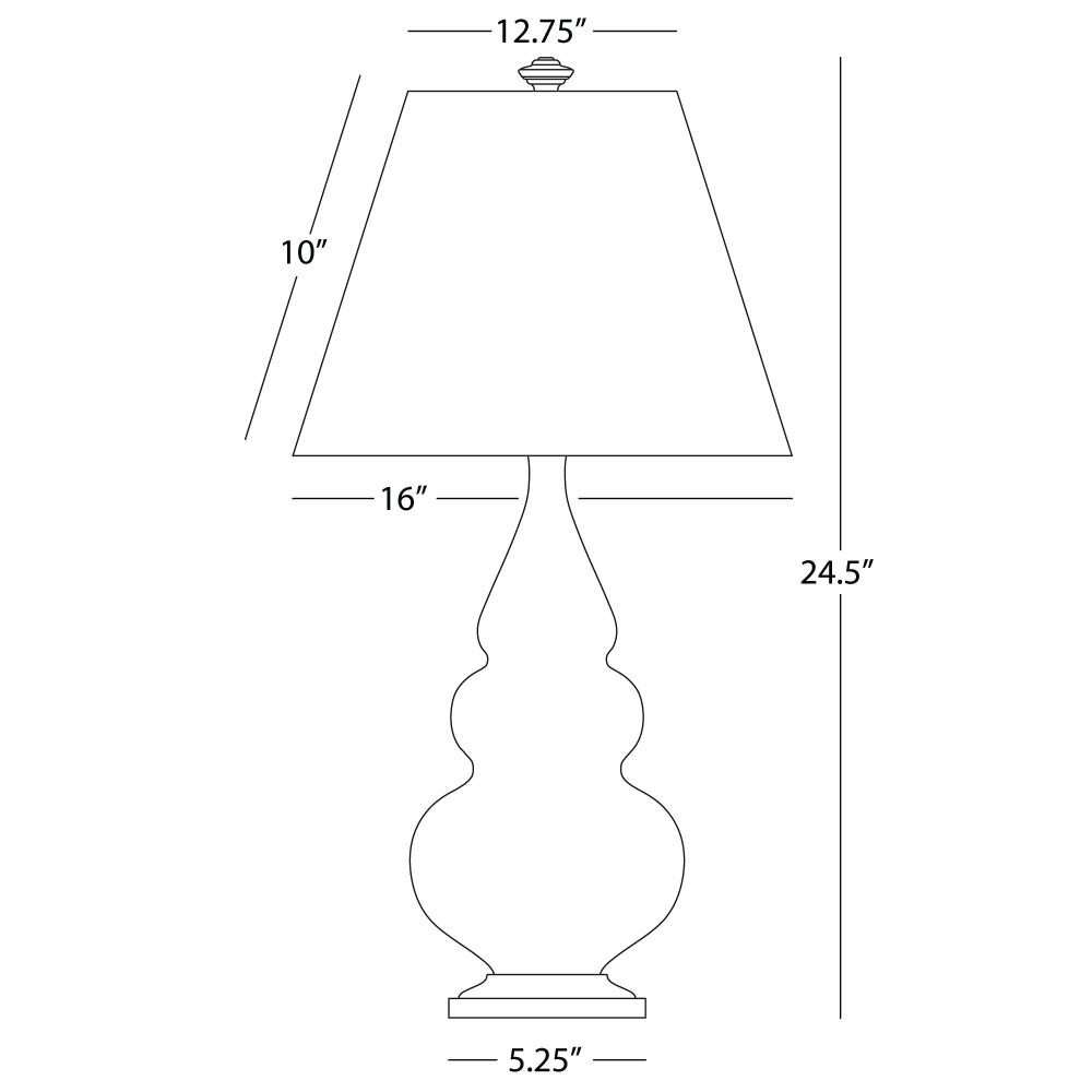 Our Triple Gourd collection features a simple but gracefully curving silhouette. Available in a wide array of vibrant colors and several different base finishes. - Midnight Blue Glazed Ceramic with Lucite Base Small Triple Gourd Accent Lamp with Pearl Dupioni Fabric Shade
