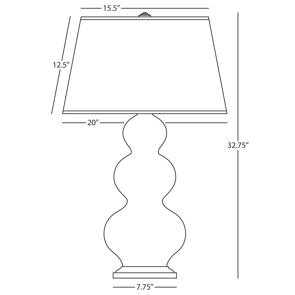 Our Triple Gourd collection features a simple but gracefully curving silhouette. Available in a wide array of vibrant colors and several different base finishes. - Steel Blue Glazed Ceramic with Antique Silver Finished Accents Triple Gourd Table Lamp with Pearl Dupioni Fabric Shade