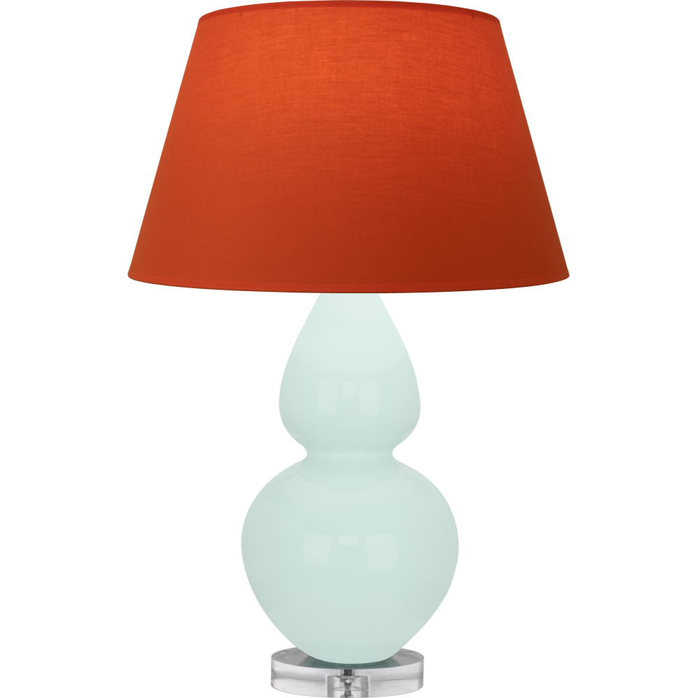 Mint Glazed Ceramic with Lucite Base Double Gourd Table Lamp with Tangerine Fabric Shade with Taupe Lining - Our Double Gourd collection features a simple but gracefully curving silhouette. Available in a wide array of vibrant colors and several different base finishes.