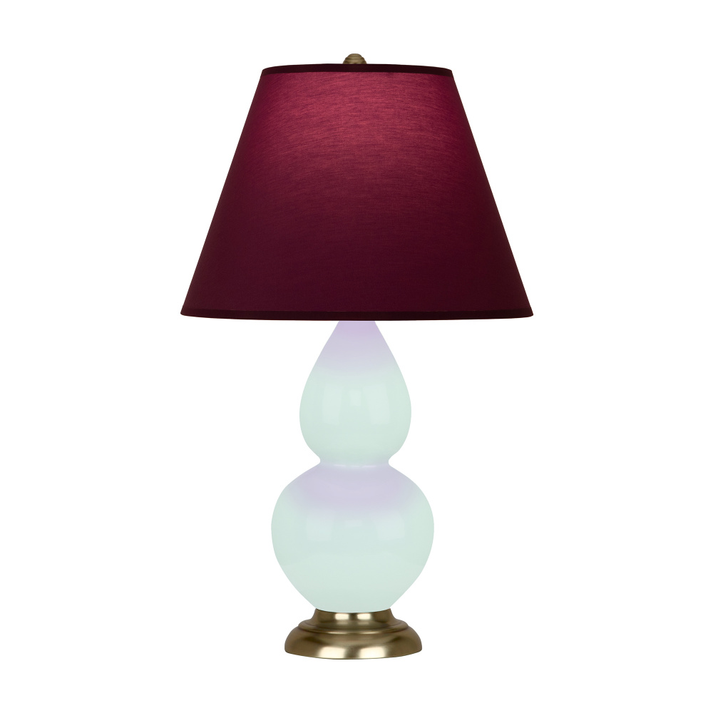 Mint Glazed Ceramic with Antique Brass Finished Accents Small Double Gourd Accent Lamp with Plum Fabric Shade with Lavender Lining - Our Double Gourd collection features a simple but gracefully curving silhouette. Available in a wide array of vibrant colors and several different base finishes.