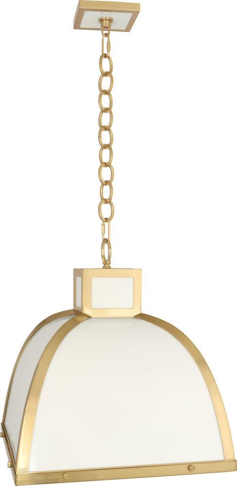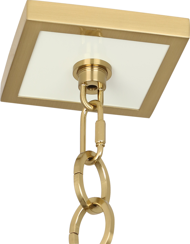 The Ranger collection is high contrast and contemporary, combining sleek metal framework and chic surfaces. - Glossy White Painted Finish with Modern Brass Accents Ranger Pendant with Square Printed White Glass Diffuser