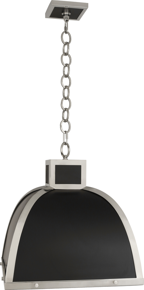 The Ranger collection is high contrast and contemporary, combining sleek metal framework and chic surfaces. - Matte Black Painted Finish with Polished Nickel Accents Ranger Pendant with Square Printed White Glass Diffuser