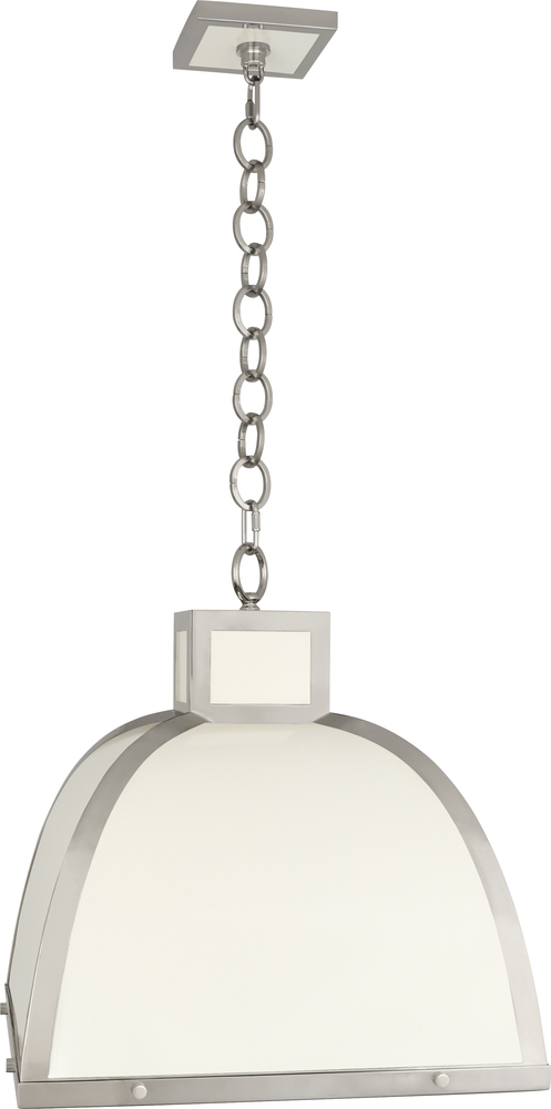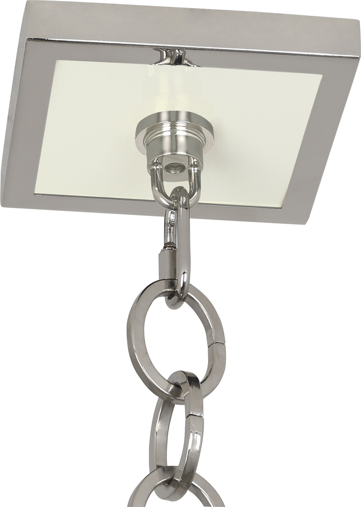 The Ranger collection is high contrast and contemporary, combining sleek metal framework and chic surfaces. - Glossy White Painted Finish with Polished Nickel Accents Ranger Pendant with Square Printed White Glass Diffuser