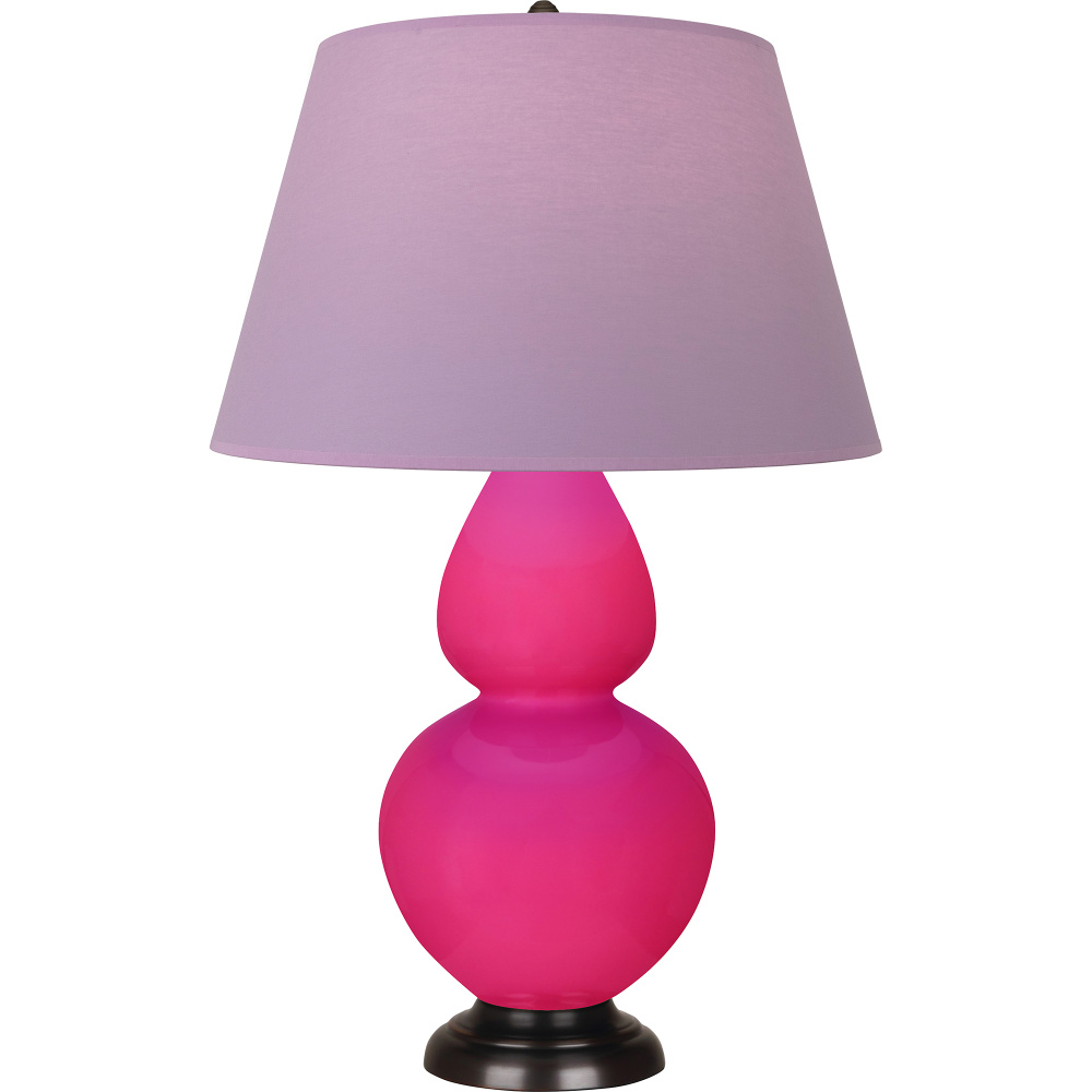 Razzle Rose Glazed Ceramic with Deep Patina Bronze Finished Accents Double Gourd Table Lamp with Lavender Fabric Shade with Plum Lining - Our Double Gourd collection features a simple but gracefully curving silhouette. Available in a wide array of vibrant colors and several different base finishes.