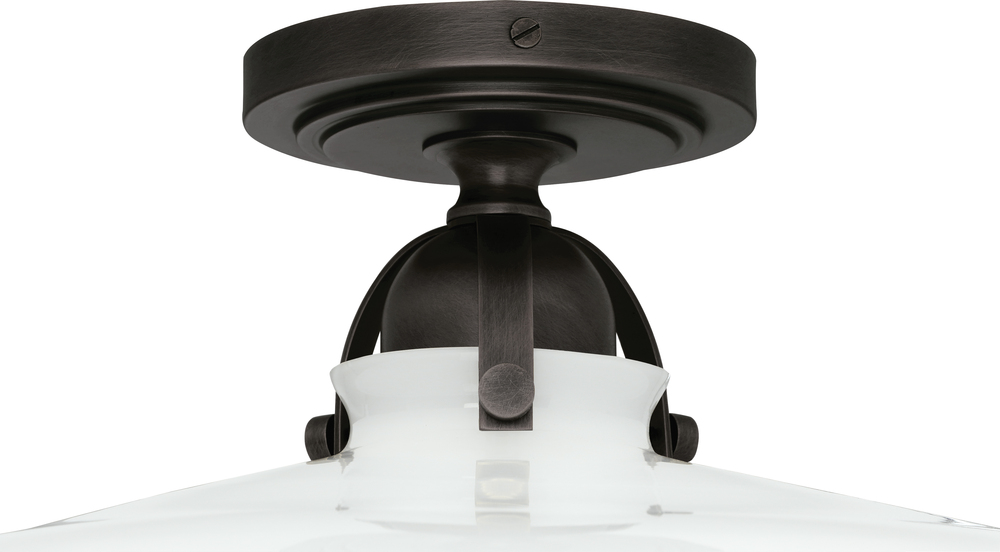 Minimal and ethereal, the Arial collection has a touch of industrial style that you will love. Sleek metal arms and knurled turn knobs provide interesting accents to the shallow frosted glass shade. These pieces are versatile and contemporary. - Deep Patina Bronze Rico Espinet Arial Flushmount with White Glass