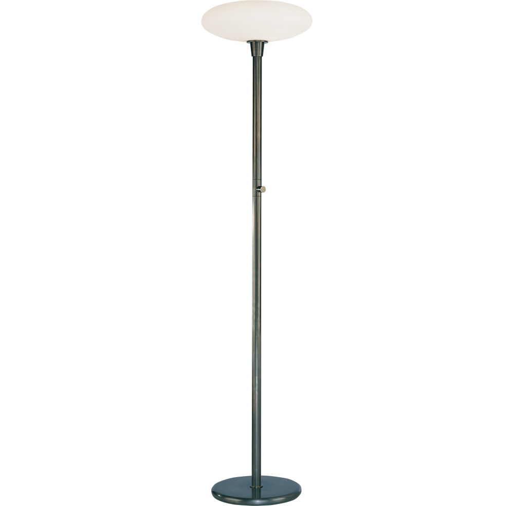 Ovo, designed by Rico Espinet for Robert Abbey, features a simple and streamlined design highlighted by a unique, oval, frosted glass shade. This collection radiates brilliant but pleasantly diffused light that will illuminate your modern space perfectly. - Deep Patina Bronze Rico Espinet Ovo Torchiere with Frosted White Cased Glass Shade