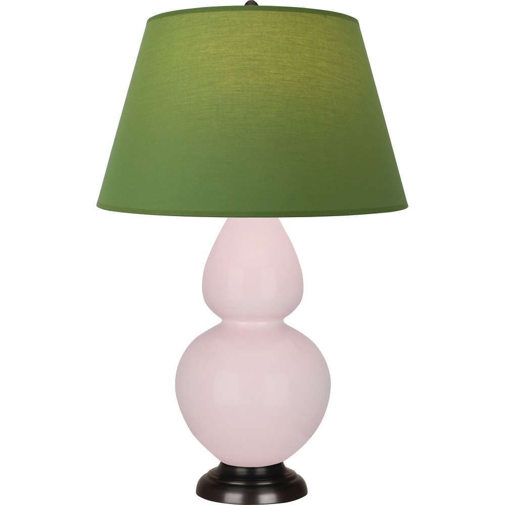 Rose Water Glazed Ceramic with Deep Patina Bronze Finished Accents Double Gourd Table Lamp with Tea Green Fabric Shade with Taupe Lining - Our Double Gourd collection features a simple but gracefully curving silhouette. Available in a wide array of vibrant colors and several different base finishes.