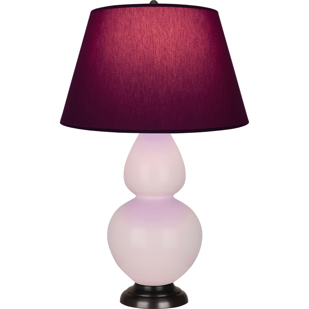 Rose Water Glazed Ceramic with Deep Patina Bronze Finished Accents Double Gourd Table Lamp with Plum Fabric Shade with Lavender Lining - Our Double Gourd collection features a simple but gracefully curving silhouette. Available in a wide array of vibrant colors and several different base finishes.