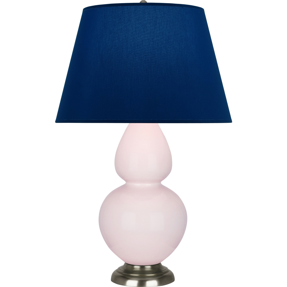 Rose Water Glazed Ceramic with Antique Silver Finished Accents Double Gourd Table Lamp with Navy Fabric Shade with Gray Lining - Our Double Gourd collection features a simple but gracefully curving silhouette. Available in a wide array of vibrant colors and several different base finishes.