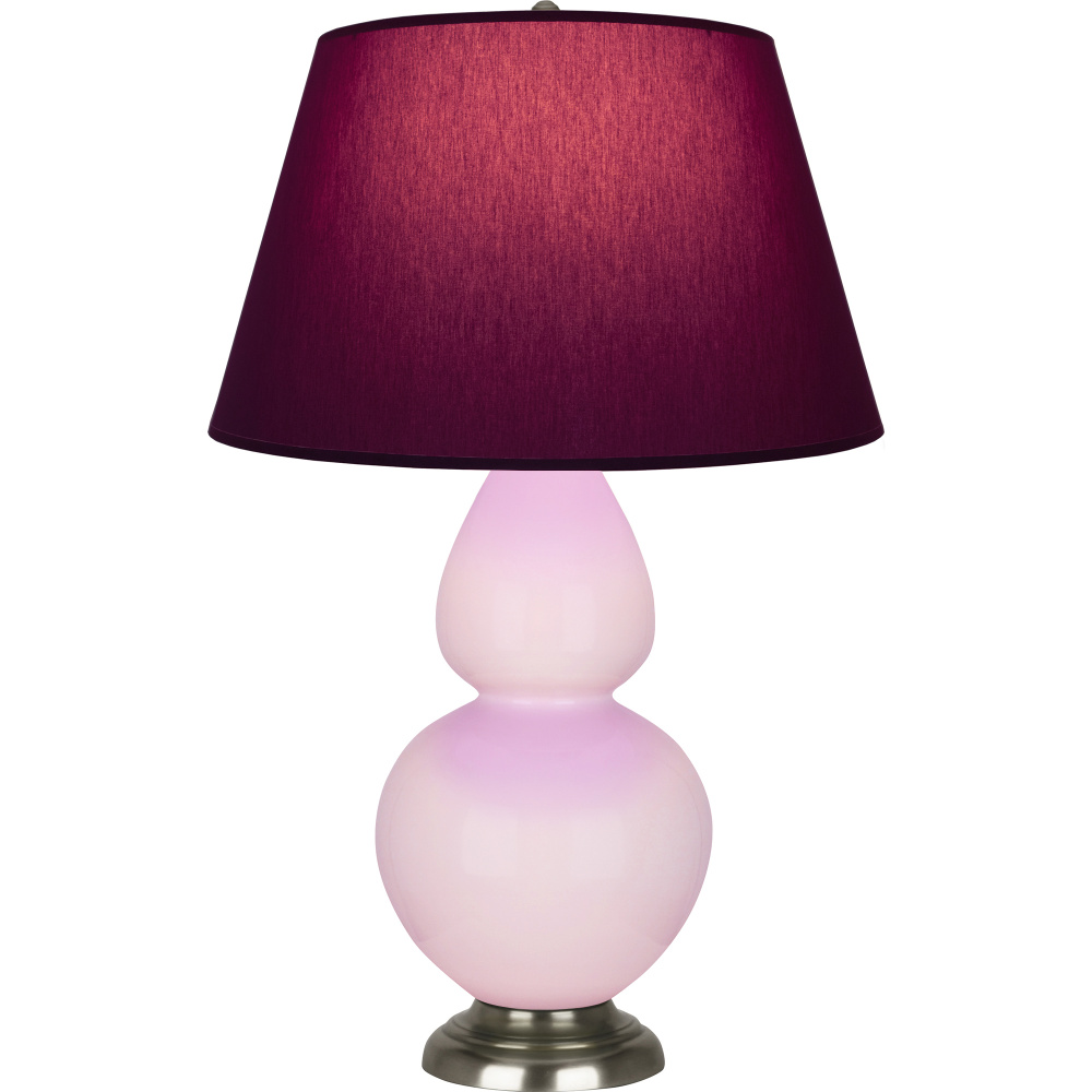 Rose Water Glazed Ceramic with Antique Silver Finished Accents Double Gourd Table Lamp with Plum Fabric Shade with Lavender Lining - Our Double Gourd collection features a simple but gracefully curving silhouette. Available in a wide array of vibrant colors and several different base finishes.