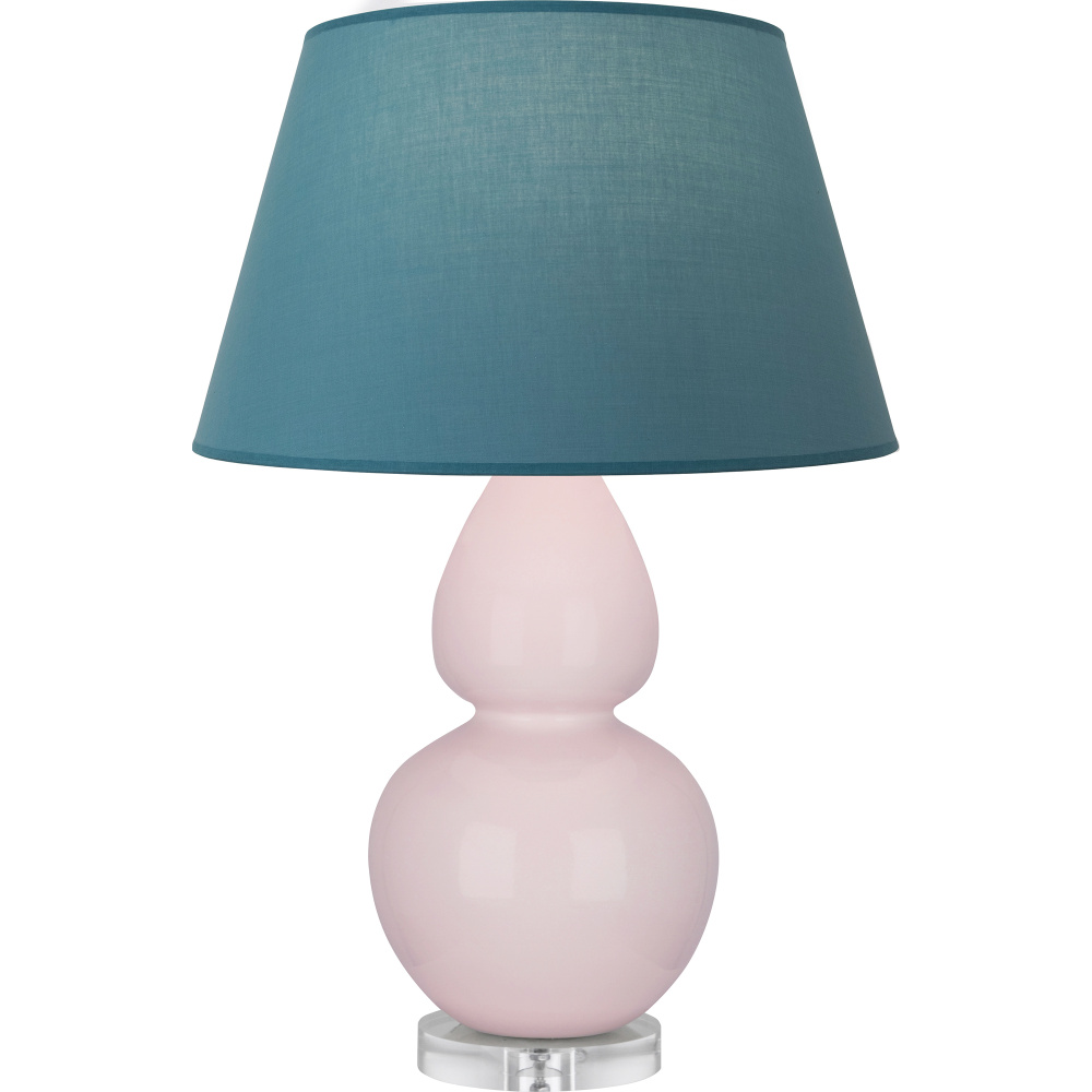 Rose Water Glazed Ceramic with Lucite Base Double Gourd Table Lamp with Bright Blue Fabric Shade with Gray Lining - Our Double Gourd collection features a simple but gracefully curving silhouette. Available in a wide array of vibrant colors and several different base finishes.