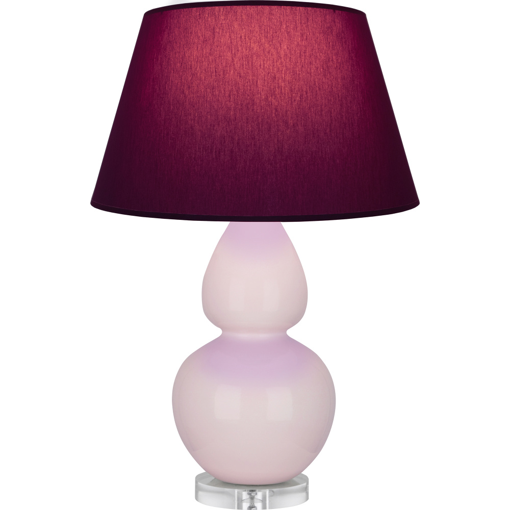 Rose Water Glazed Ceramic with Lucite Base Double Gourd Table Lamp with Plum Fabric Shade with Lavender Lining - Our Double Gourd collection features a simple but gracefully curving silhouette. Available in a wide array of vibrant colors and several different base finishes.