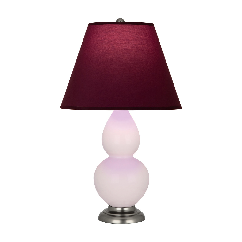 Rose Water Glazed Ceramic with Antique Silver Finished Accents Small Double Gourd Accent Lamp with Plum Fabric Shade with Lavender Lining - Our Double Gourd collection features a simple but gracefully curving silhouette. Available in a wide array of vibrant colors and several different base finishes.