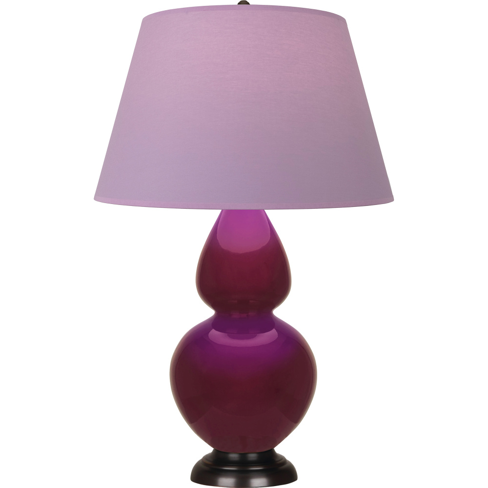 Sugar Plum Glazed Ceramic with Deep Patina Bronze Finished Accents Double Gourd Table Lamp with Lavender Fabric Shade with Plum Lining - Our Double Gourd collection features a simple but gracefully curving silhouette. Available in a wide array of vibrant colors and several different base finishes.