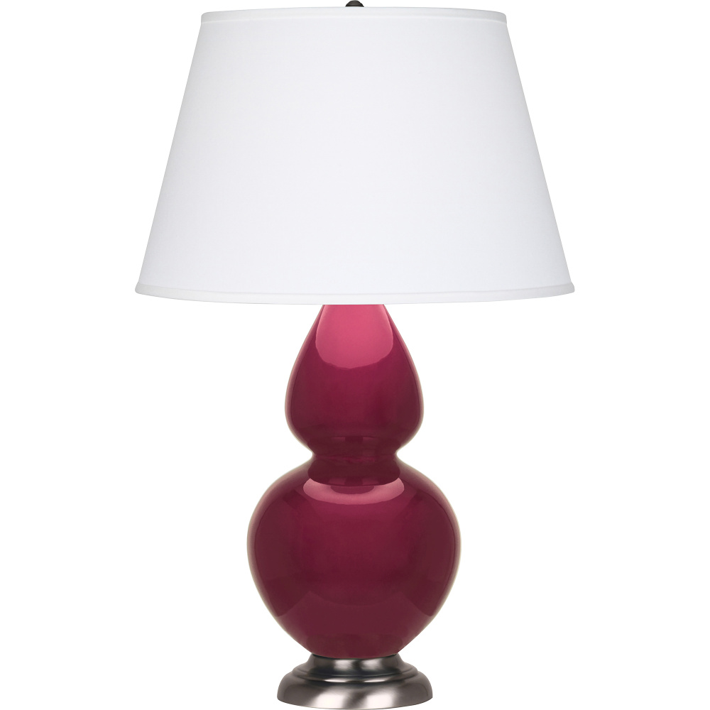 Sugar Plum Glazed Ceramic with Antique Silver Finished Accents Double Gourd Table Lamp with Pearl Dupioni Fabric Shade - Our Double Gourd collection features a simple but gracefully curving silhouette. Available in a wide array of vibrant colors and several different base finishes.