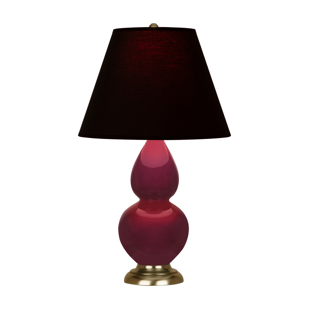 Sugar Plum Glazed Ceramic with Antique Brass Finished Accents Small Double Gourd Accent Lamp with Ink Fabric Shade with Rose Red Lining - Our Double Gourd collection features a simple but gracefully curving silhouette. Available in a wide array of vibrant colors and several different base finishes.