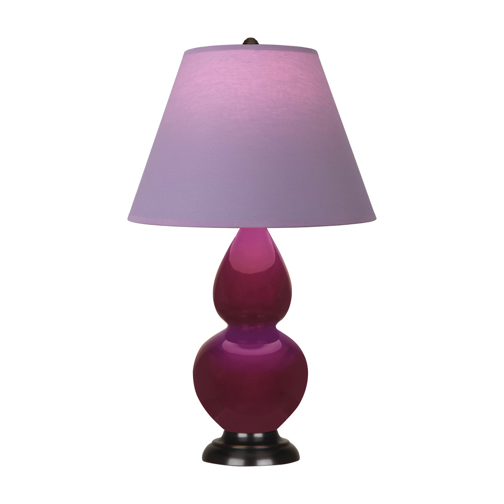 Sugar Plum Glazed Ceramic with Deep Patina Bronze Finished Accents Small Double Gourd Accent Lamp with Lavender Fabric Shade with Plum Lining - Our Double Gourd collection features a simple but gracefully curving silhouette. Available in a wide array of vibrant colors and several different base finishes.