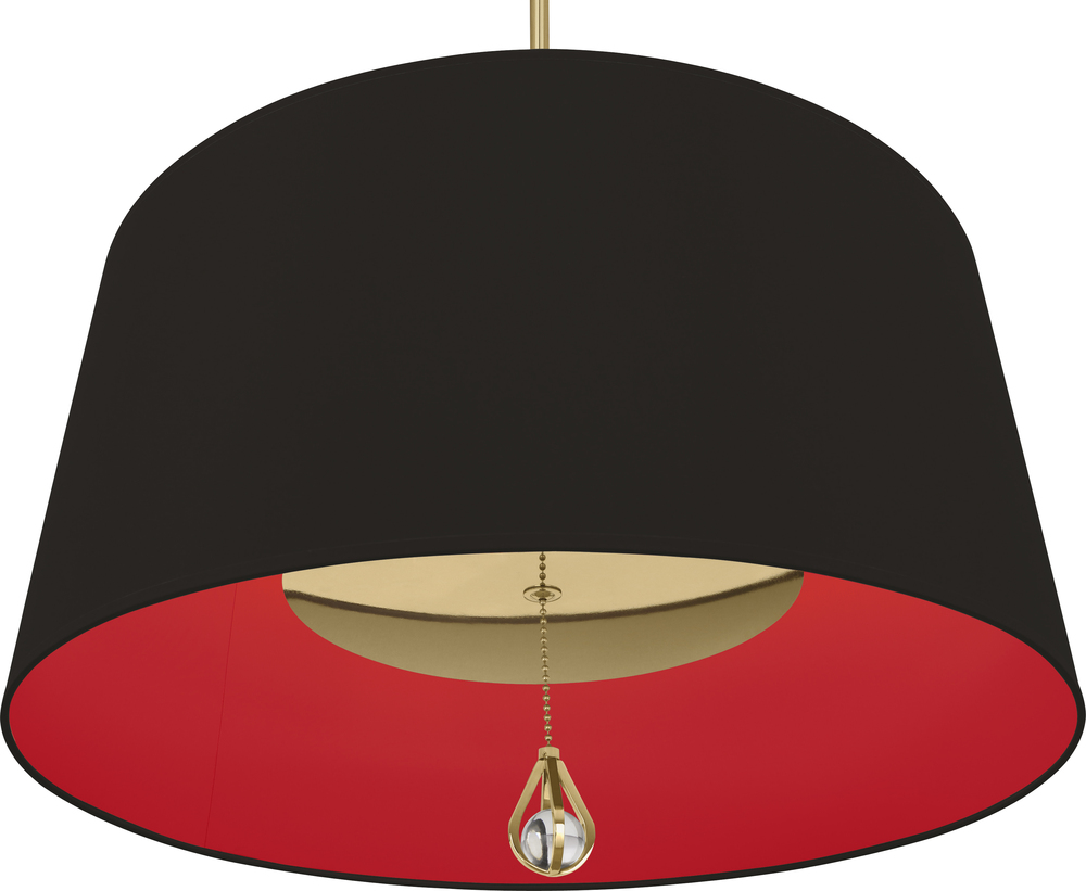 Modern Brass Williamsburg Custis Pendant with Blacksmith Black Fabric Shade with Richmond Red Lining