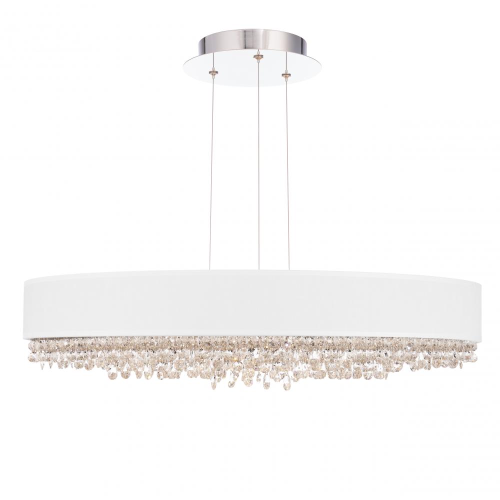 A deluge of Radiance® Crystal fall from a luminous body of iridescent organza. Suspended with invisible powered aircraft cable, marvel at a pristine ensemble that appears to hover in midair.