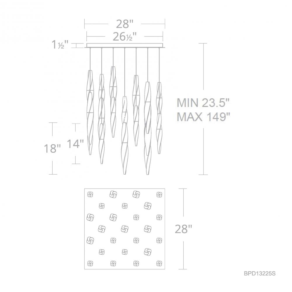 A subtle twist of luxe. Kindjal features exquisite Optic Crystal icicles that twist to a point from a cohesive metal casting, concealing a powerful LED that provide ample illumination. Stylish, textured materiality.
