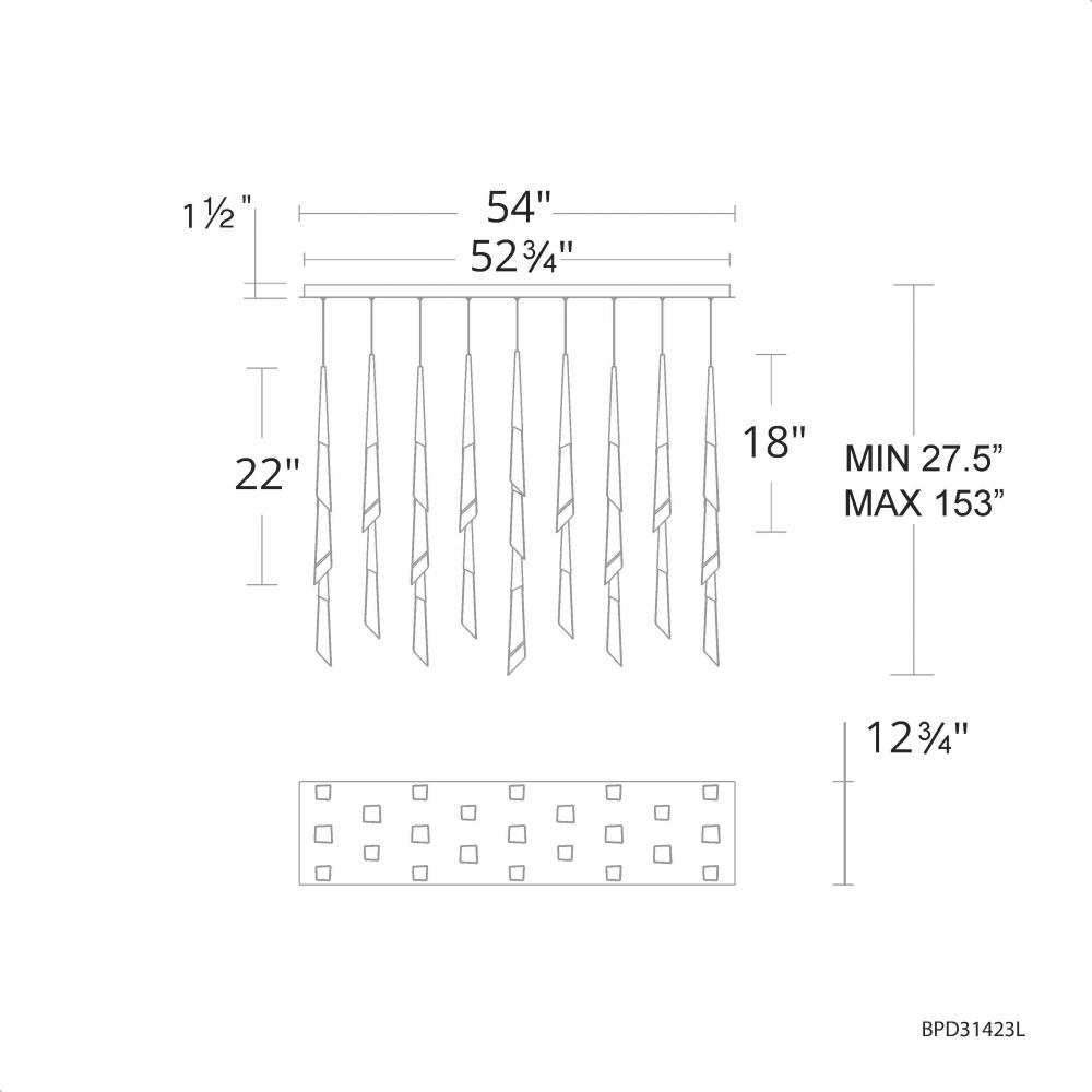 Solitude 23 Light 120-277V Multi-Light Pendant (Linear Canopy) in Antique Nickel with Optic Haze Q