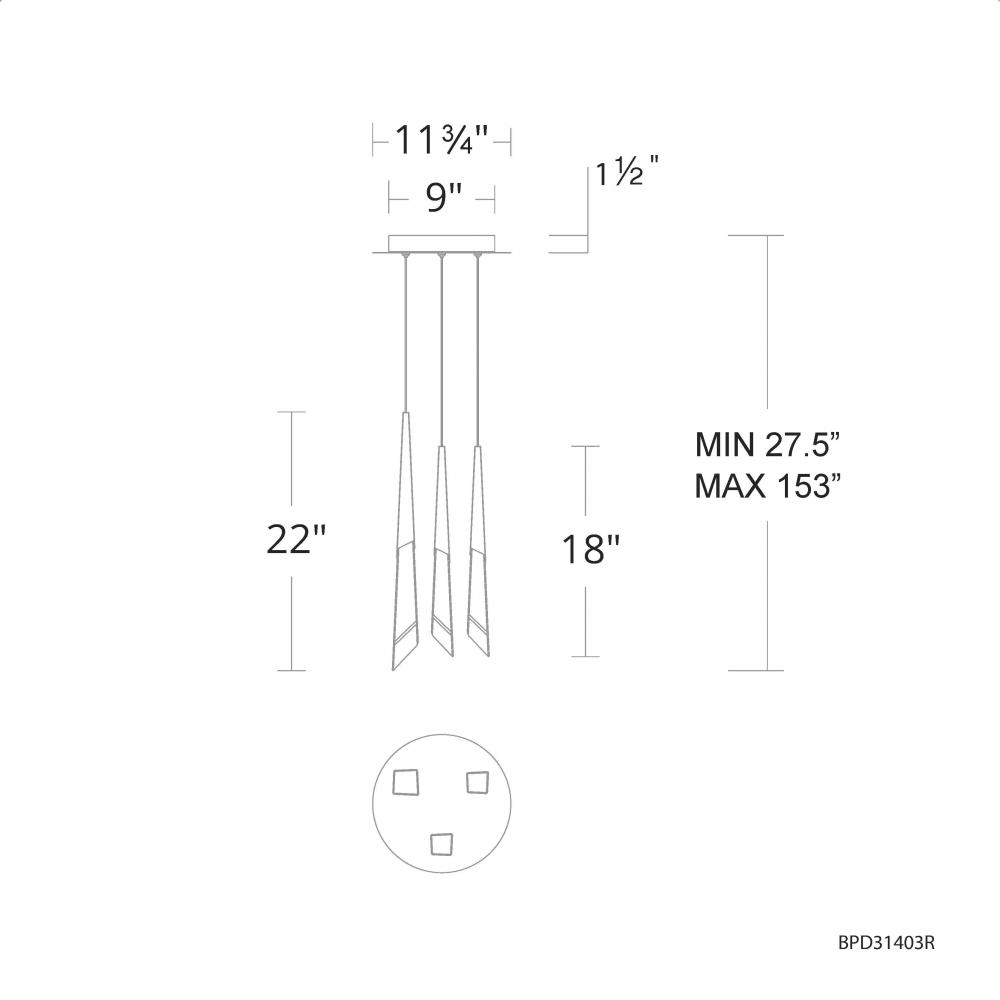 Solitude 3 Light 120-277V Multi-Light Pendant (Round Canopy) in Aged Brass with Optic Haze Quartz