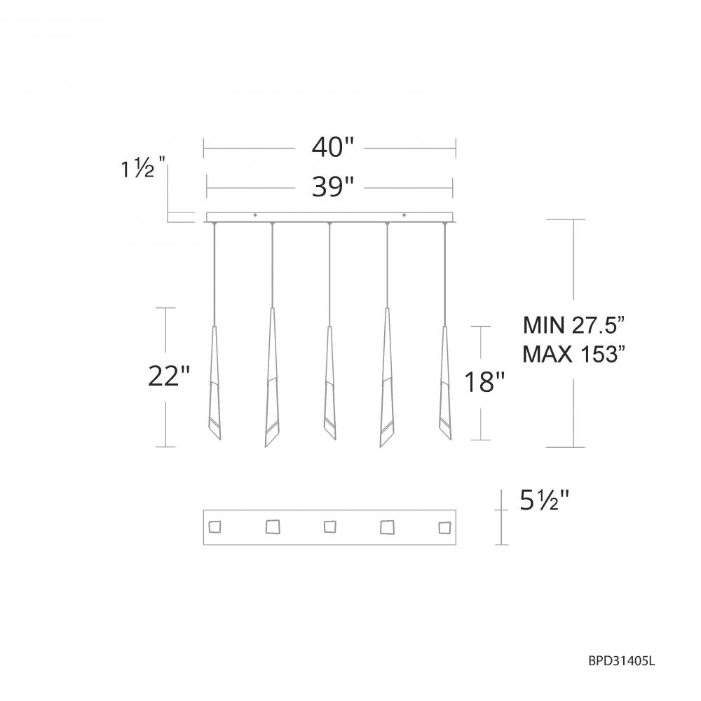 Solitude 5 Light 120-277V Multi-Light Pendant (Linear Canopy) in Antique Nickel with Optic Haze Qu