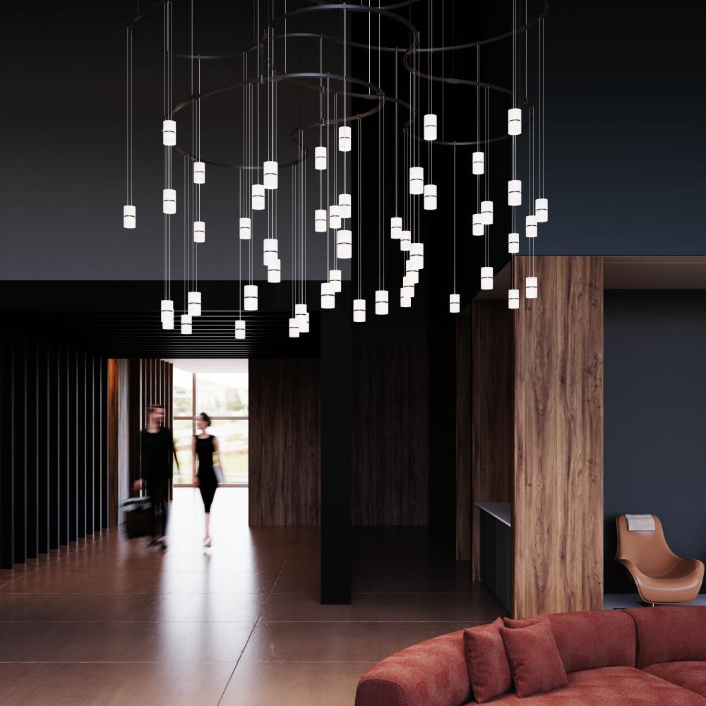 48" 2-Tier Tandem with Monoline Etched Cylinder Pendants