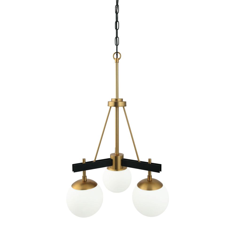 Mid-Century and Post Modern Design Influences. Gorgeous White Recycled Glass Globes. Easy Re-lamping. Two Tone Satin Black with Brass or Polished Nickel with Black Finshes.