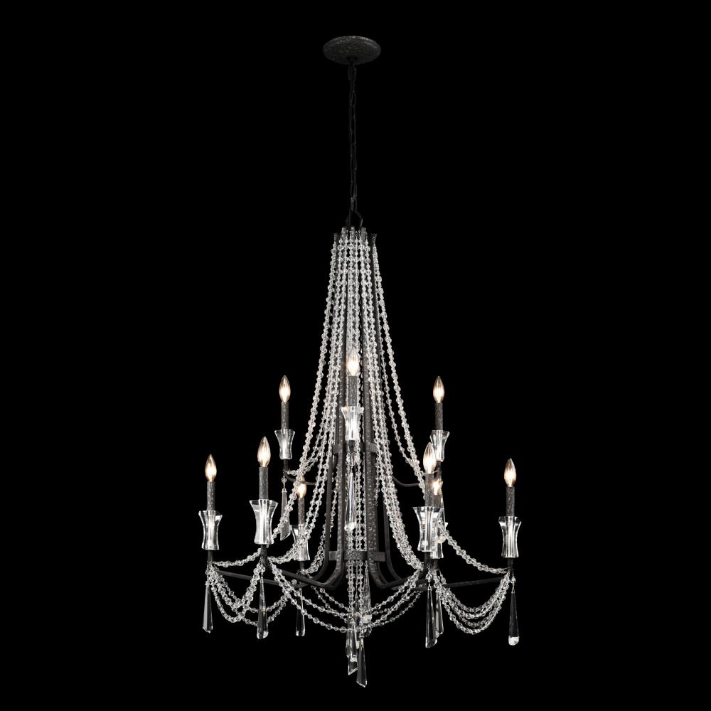 Pulling cues from its namesake city, Barcelona mixes the literal textures of city (Gaudi anyone?) with modern structure and applies them to a classical crystal chandelier. Its frame mixes the great (hand-forged and hand-textured recycled steel) with the spectacular (heirloom-quality optic crystal). It's superior crystal with a most delicious twist.