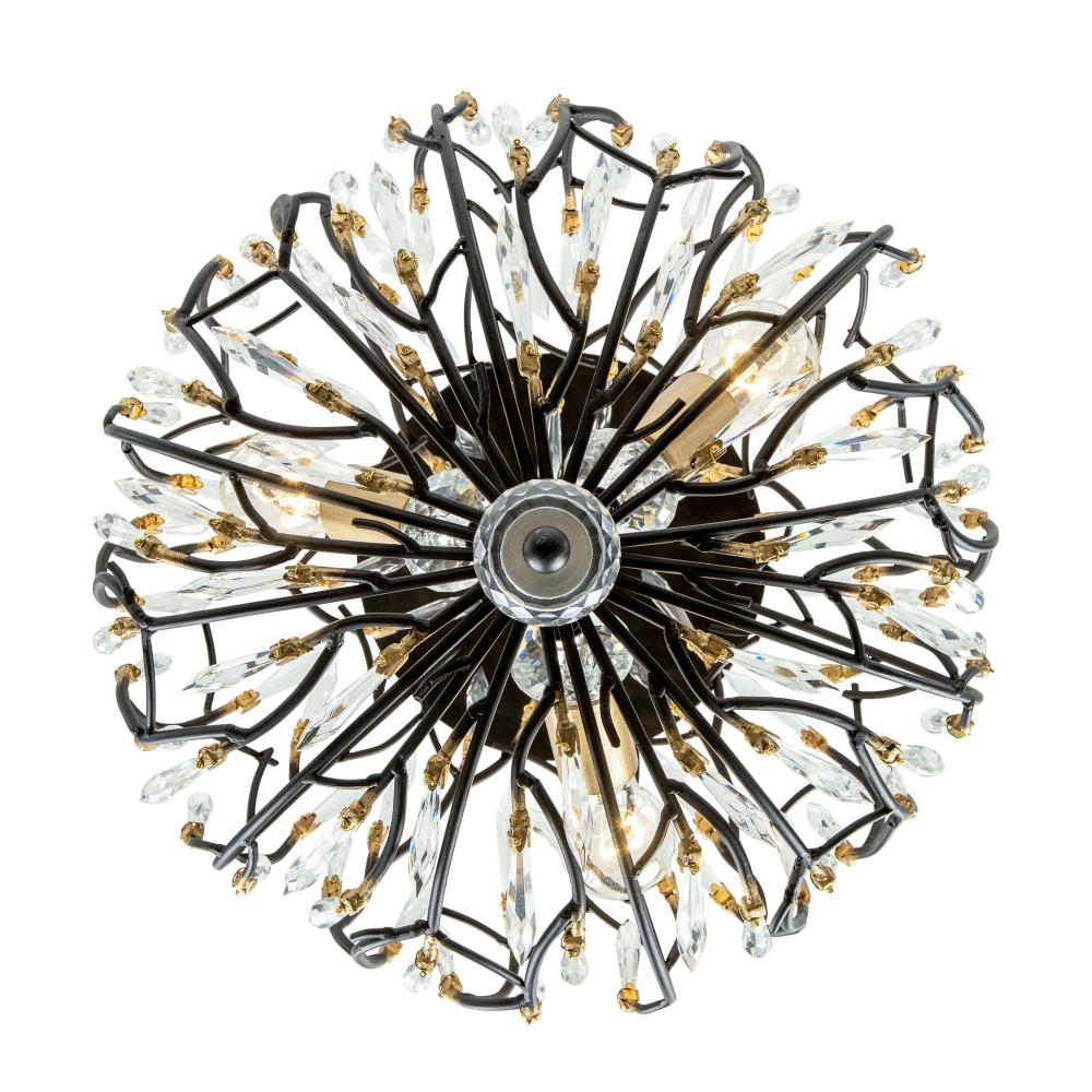 Bask is a unique crystal piece that melds together fashion influenced shapes and nature inspired details. Its pre-installed premium crystals and black with gold accents or gold dust finishes give duality with silvery sparkles and glimmering gold. This glamorous and whimsical collection is handmade using recycled steel and features unique elements, starting at the hand-hammered canopy. With stylishly sustainable choices like Bask, it's easy to see why Varaluz was the 2018 ARTS Awards Green Award Winner.