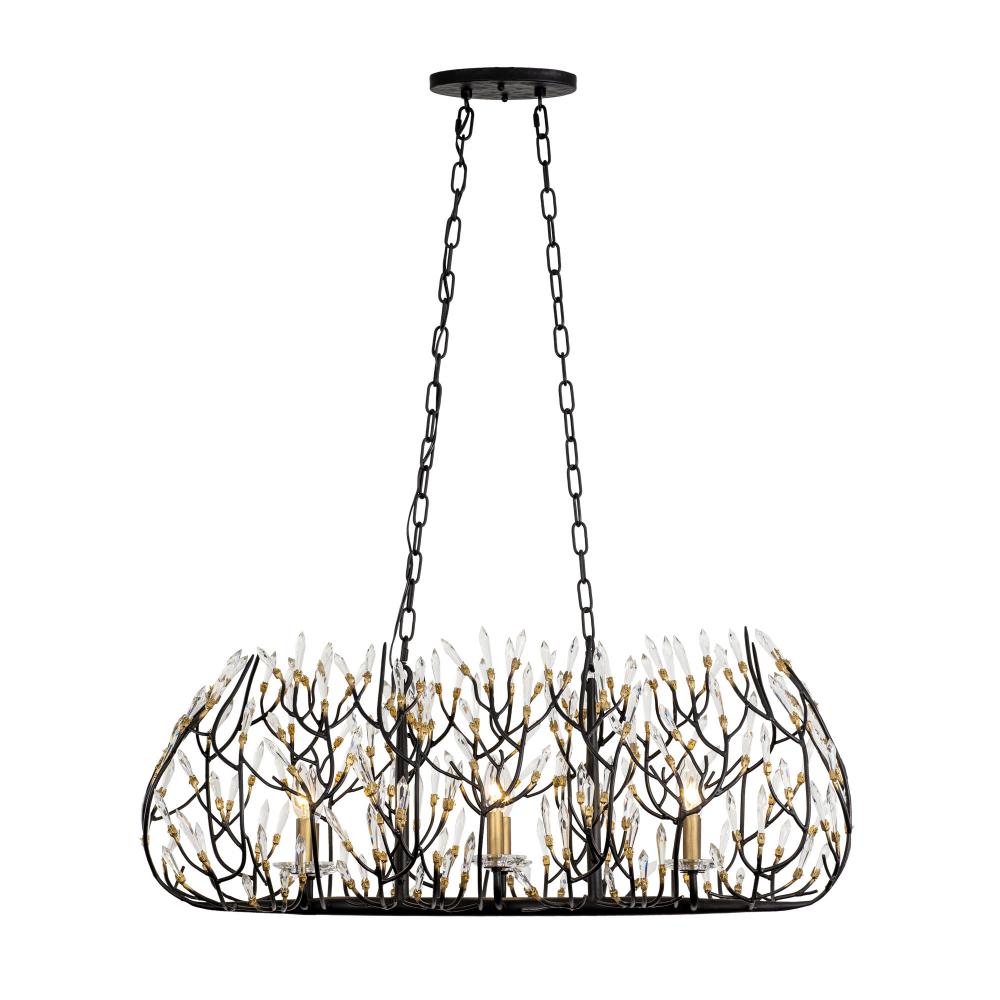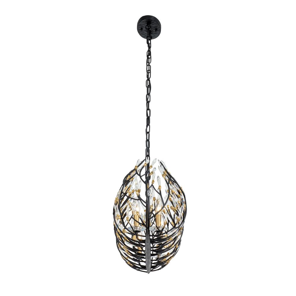 Bask is a unique crystal piece that melds together fashion influenced shapes and nature inspired details. Its pre-installed premium crystals and black with gold accents or gold dust finishes give duality with silvery sparkles and glimmering gold. This glamorous and whimsical collection is handmade using recycled steel and features unique elements, starting at the hand-hammered canopy. With stylishly sustainable choices like Bask, it's easy to see why Varaluz was the 2018 ARTS Awards Green Award Winner.