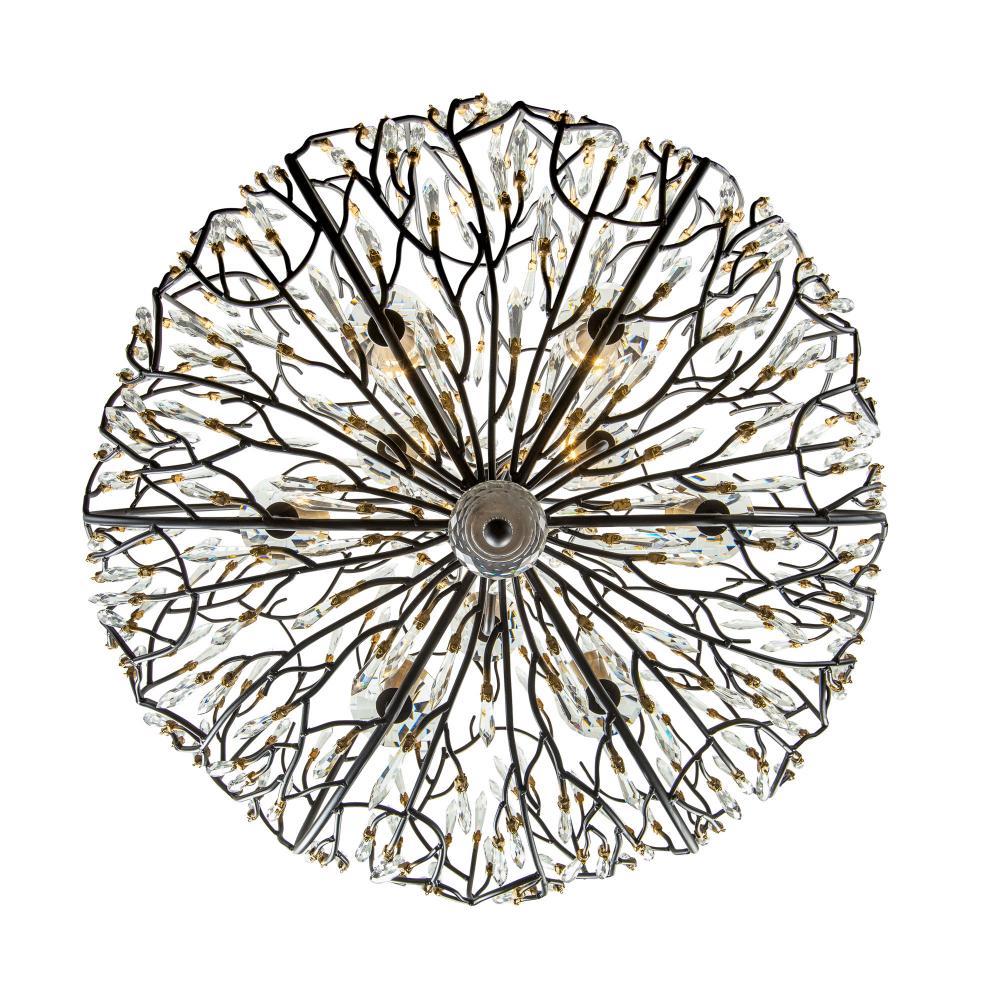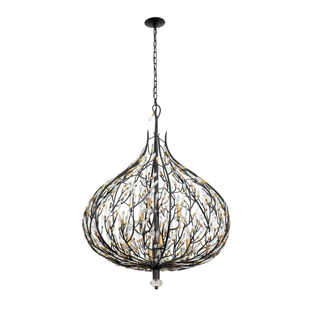 Bask is a unique crystal piece that melds together fashion influenced shapes and nature inspired details. Its pre-installed premium crystals and black with gold accents or gold dust finishes give duality with silvery sparkles and glimmering gold. This glamorous and whimsical collection is handmade using recycled steel and features unique elements, starting at the hand-hammered canopy. With stylishly sustainable choices like Bask, it's easy to see why Varaluz was the 2018 ARTS Awards Green Award Winner.
