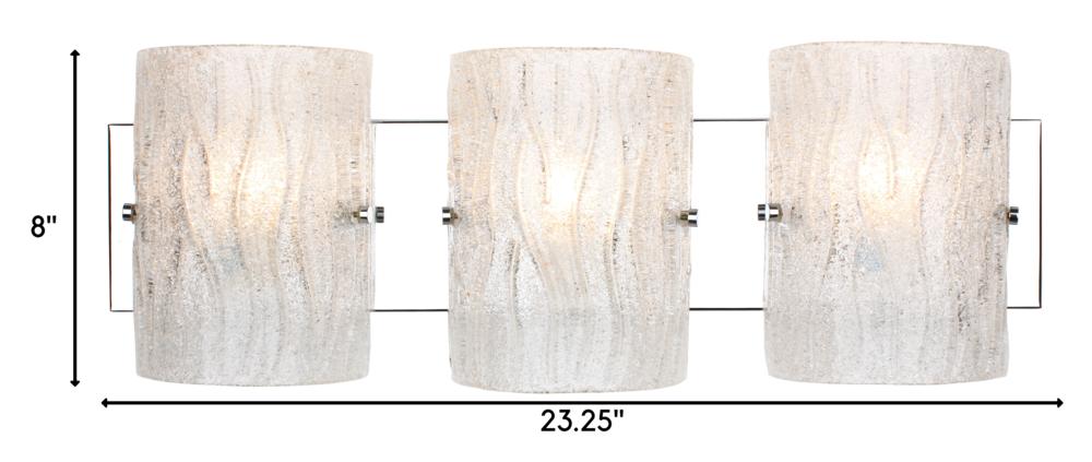 It's back! This popular design from Varaluz's past makes a modern and bright return. Named appropriately for its overall lighting effect, these fixtures marry crystally-cool ice glass, handmade Murano style with clear glass chips fused by heat on the back side, to clean and simple chromed metal work.