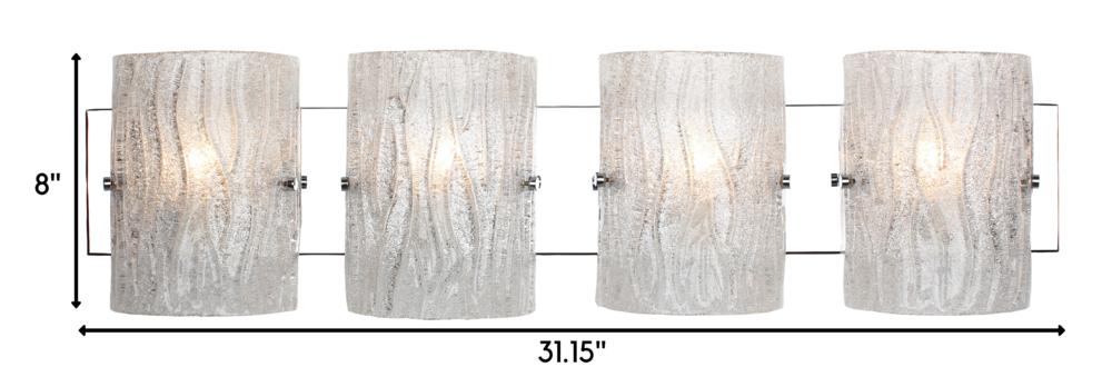 It's back! This popular design from Varaluz's past makes a modern and bright return. Named appropriately for its overall lighting effect, these fixtures marry crystally-cool ice glass, handmade Murano style with clear glass chips fused by heat on the back side, to clean and simple chromed metal work.