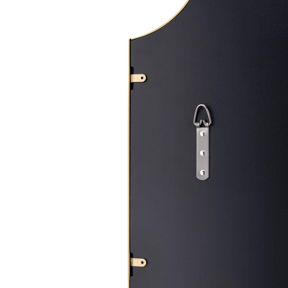 Scallops, arches, or notches, take your pick. They all inform our Carlton mirror's regal yet welcoming look. Rounded front-face metal frame. Available in gold, black or chrome.