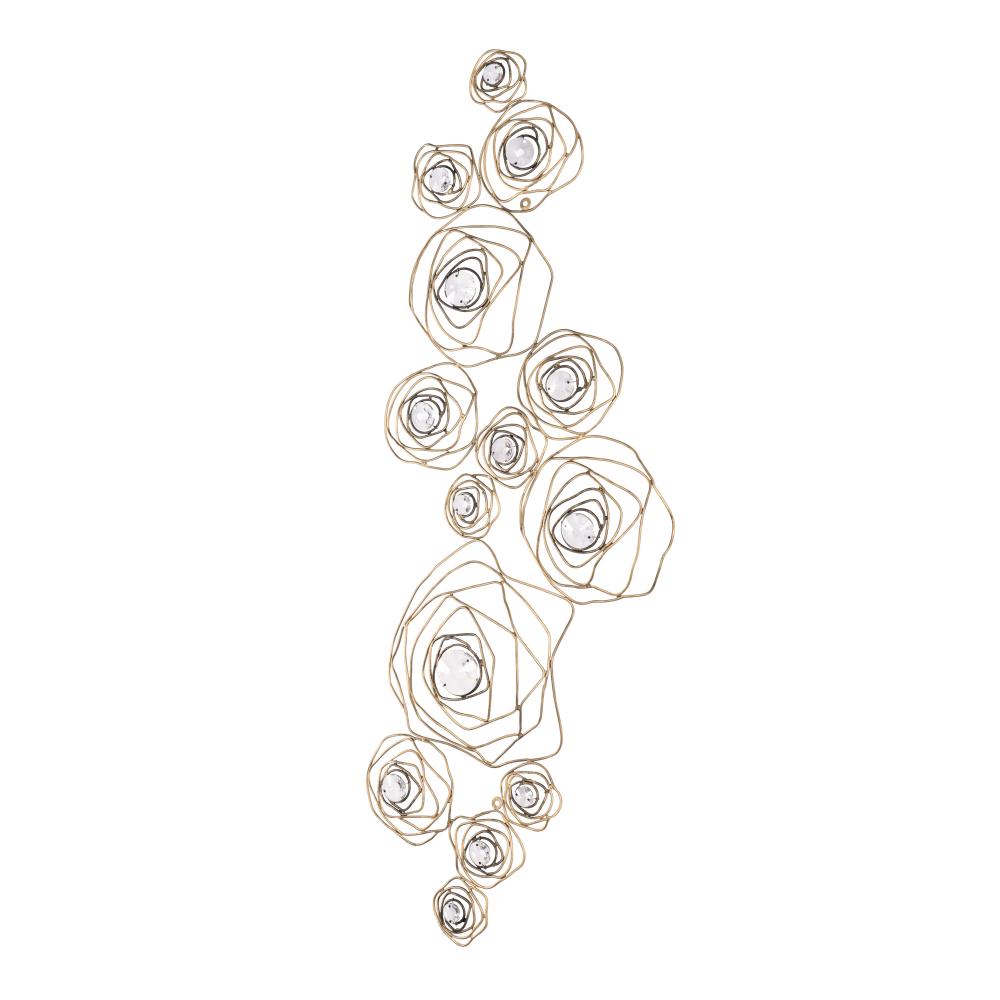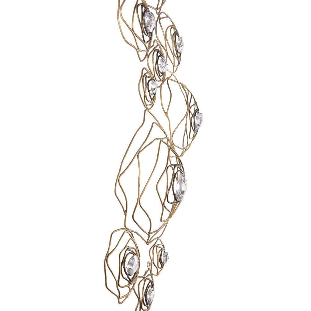 A rose is a rose is a rose, until of course, it is reimagined by Varaluz. Inspired by a drawing that appeared in the Japanese design magazine, Shin-Bijutsukai (New Oceans of Art), Ethereal Rose marries swirling lines of varying thicknesses and irregular curves with a mid-century metal work technique. At the center of each rose is a multi-faceted round optic quality crystal element. The hanging stems and secondary canopy complete the wispy design motif. A Havana Gold hand-painted multi-layered finish features a unique ombre that gets darker with additional antiquing around the crystal centers.