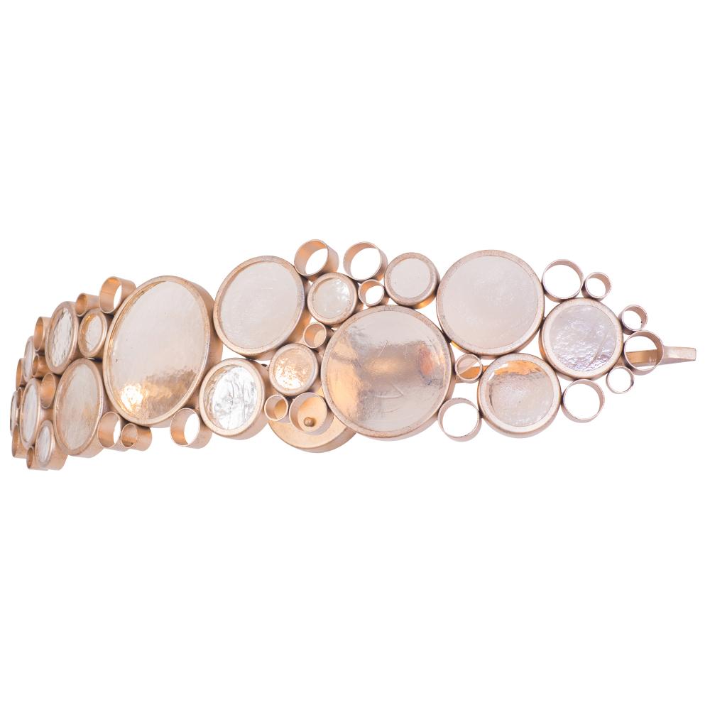 Breathtaking?that's what came to mind when we saw the ruins of an old Nevada mine at sunset. The walls had been constructed of wine bottles and mud. All those old bottles arranged so perfectly and capturing the sunlight, what better inspiration for a lighting family? We mimicked the bottle ends with recycled steel circles of varying sizes filled with recycled glass discs. Rarely before has a design based in "old" seemed so powerfully new.