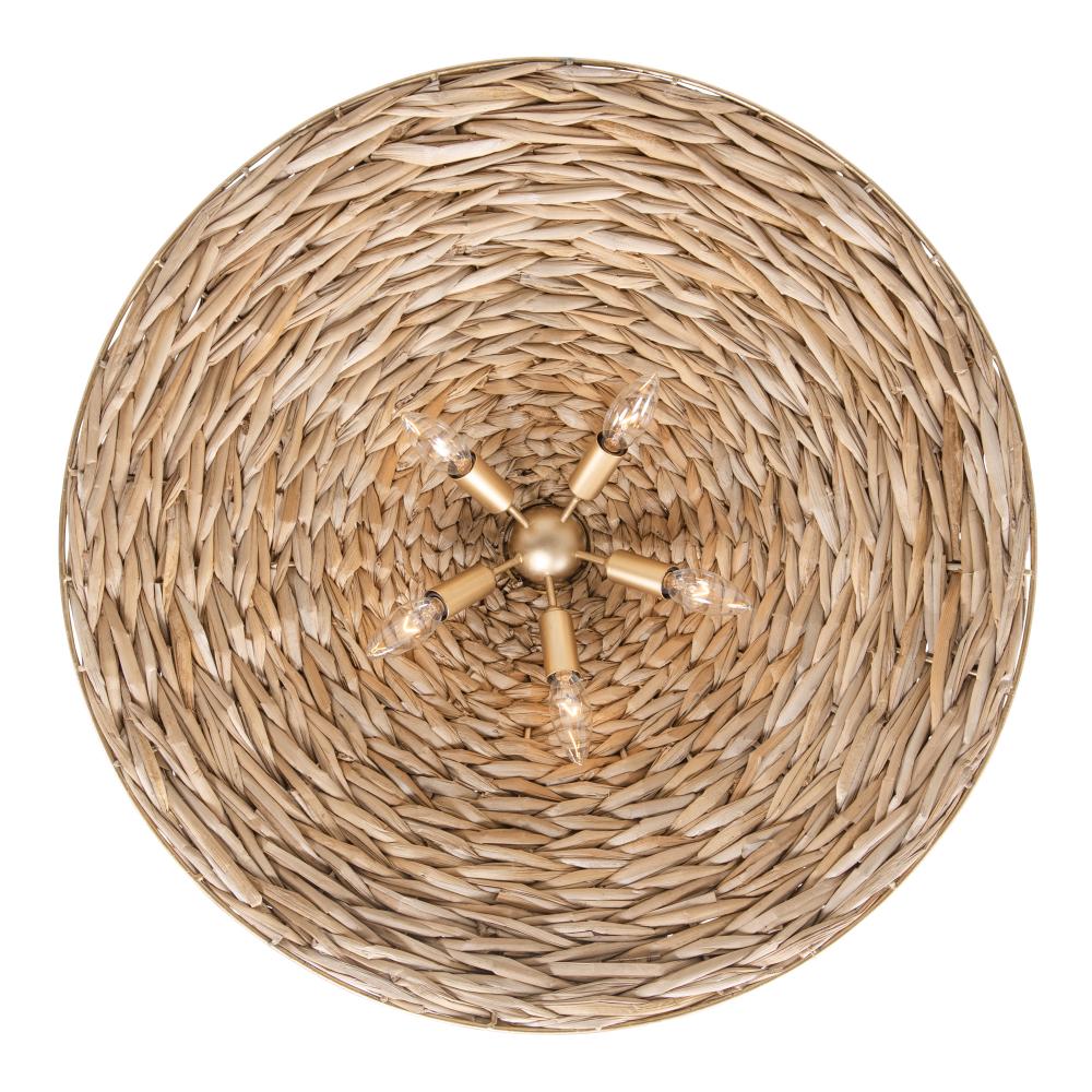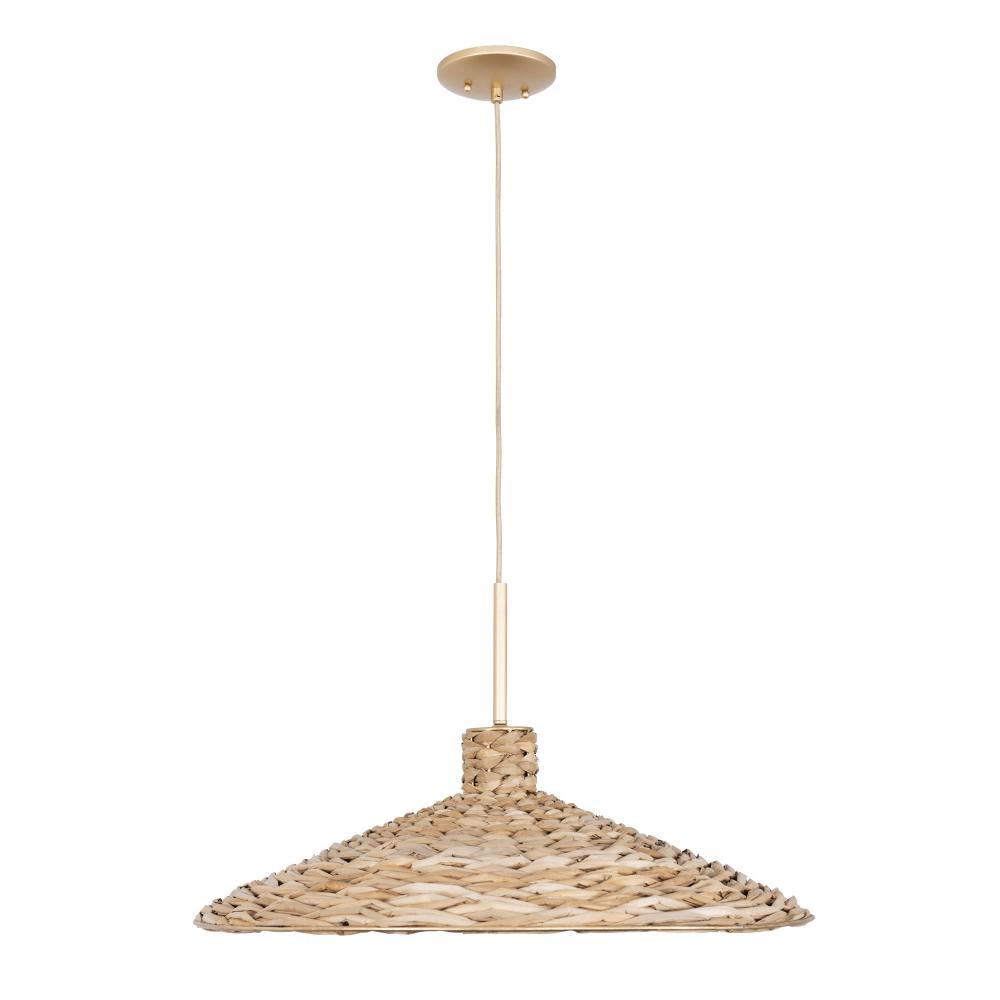 A cultural legend dating back to 2,500 - 3,000 BCE, has it that once upon a time, during a torrential downpour, a graceful goddess descended from the skies wearing a giant conical hat to shield the people from a flood of rain. In the modern day, these conical hats grace fashion runways around the world and have inspired Varaluz to adapt this look to grace the ceilings of today's homes. Hilton Head features a French Gold hand-painted, multi-layered finish and hand-woven, natural, sealed seagrass.