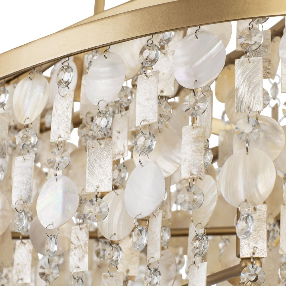 The word Kalani is the Hawaiian word for “of the heavens or sky.” To some, it also has noble connotations meaning “royal one.” For Varaluz, it is the culmination of a very regal collection of metal work styled in the grand traditions of Venetian glass and crystal chandeliers found in Smithsonian archival holdings. What makes the Kalani collection most striking is that we work in sustainable Capiz and upcycled Kabebe shells (reclaimed after food harvesting) with lead-free crystal to create a warm and inviting take on a glam fixture from days gone by, now reimagined for the modern day.