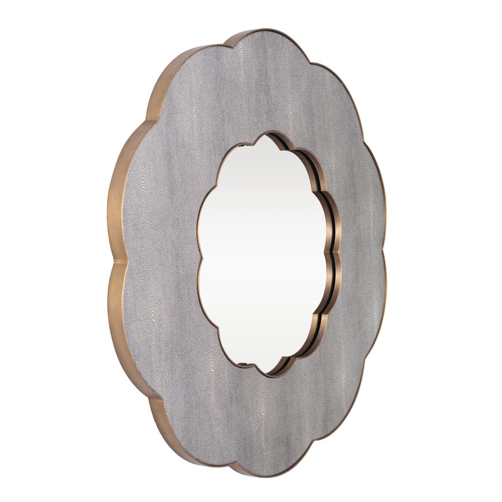 Be thrilled by the allure of the Scallop Decorative Wall Mirror from Tamara Day's collaboration with Varaluz Casa. This mirror commands attention, while its Gray Shagreen finish and Weathered Brass accents infuse any space with statement-making elegance and charm.