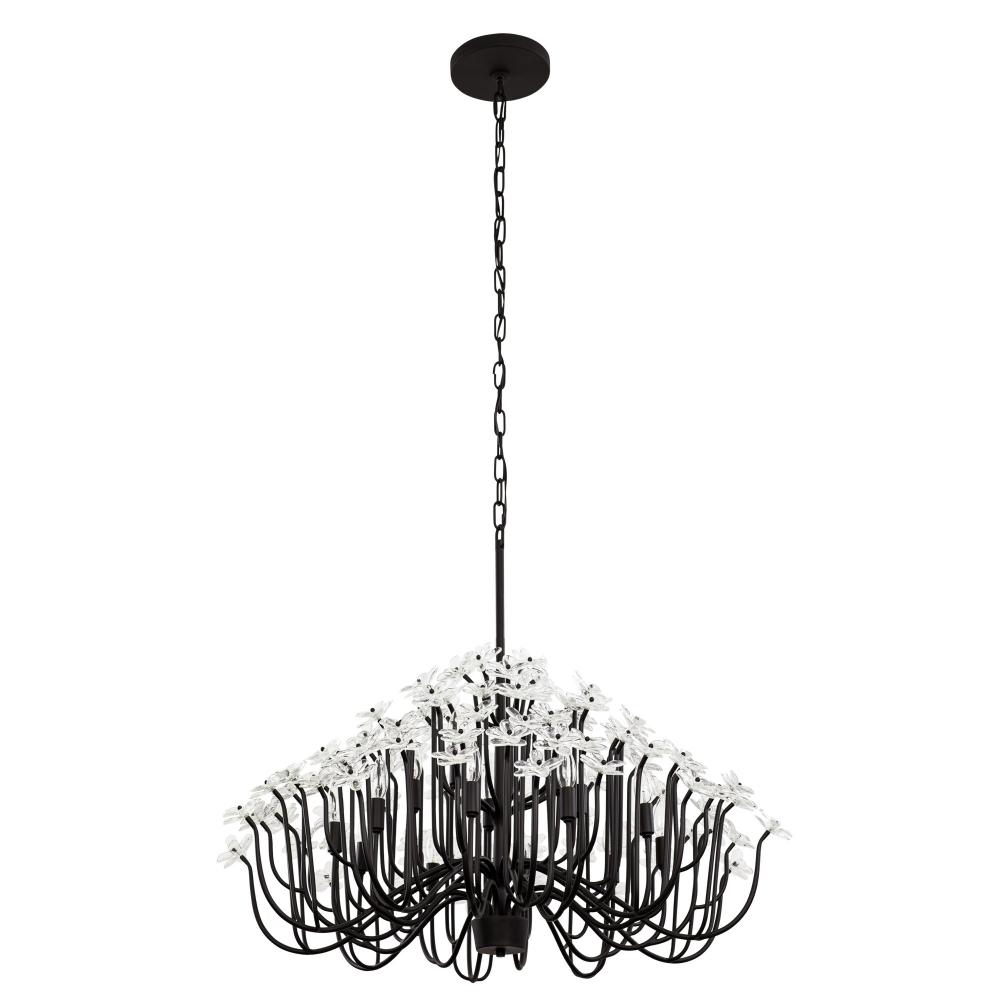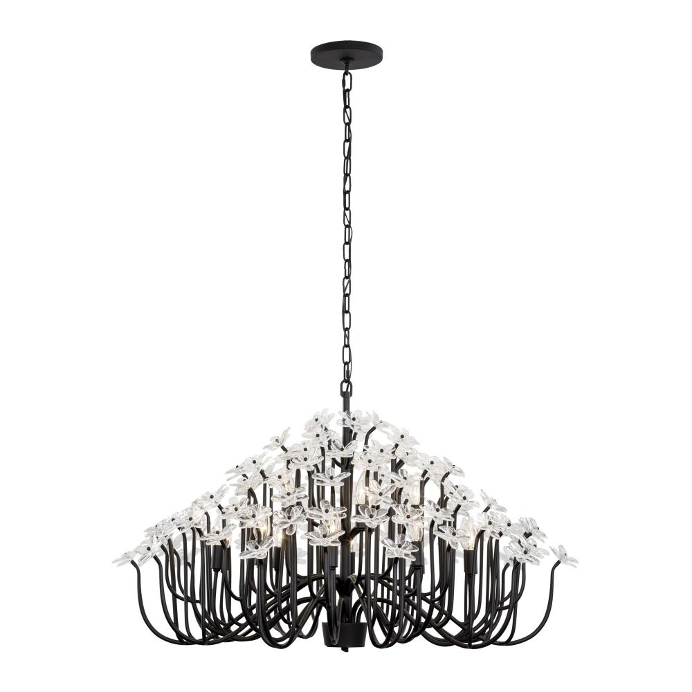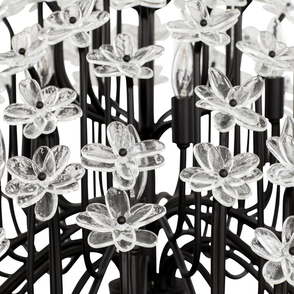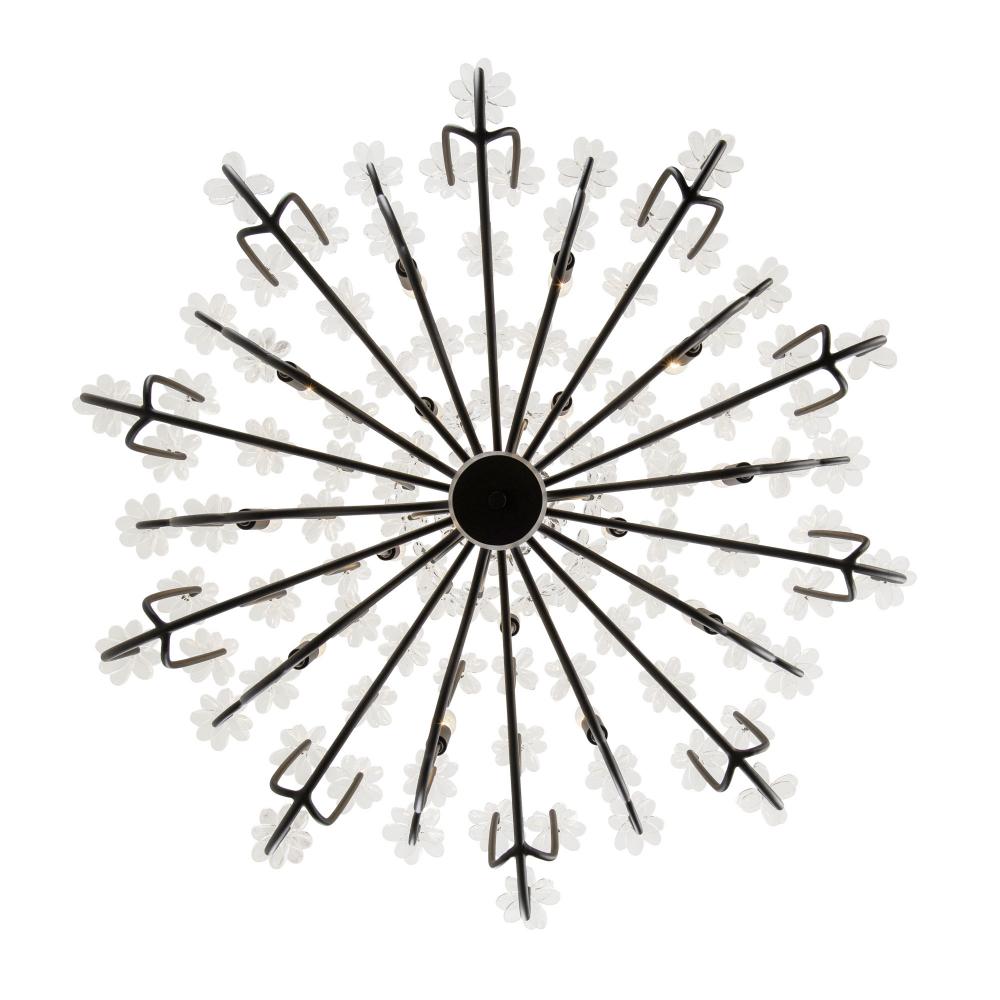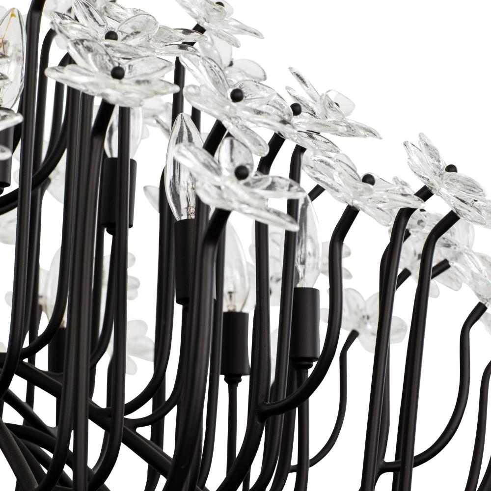 When you first see it aglow with its fine intricacies, it may not show, but the Wildflower collection started its path to existence thanks to Mary V. Walcott's Oconee-Bells discovered in the Smithsonian Libraries and Archives Special Collections. Taking center stage is a touch of Danish modern on top of midcentury. Wildflower combines delicate, handmade ice glass flower petals, with equally delicate wispy hand-forged and recycled steel tubing and metal work. Available in gold or black.