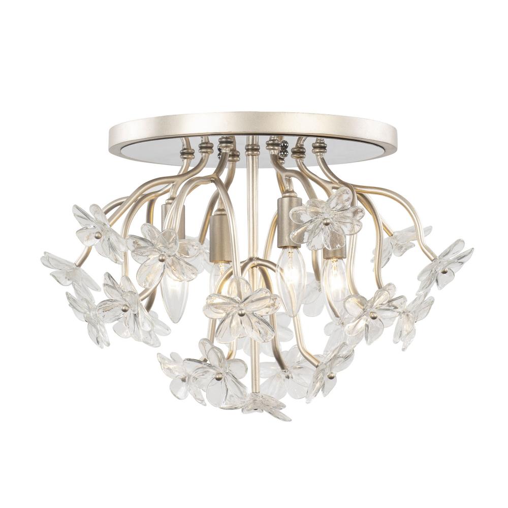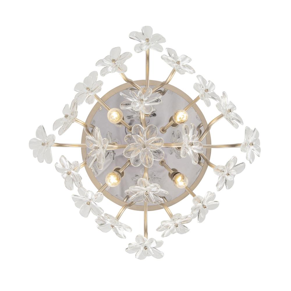 When you first see it aglow with its fine intricacies, it may not show, but the Wildflower collection started its path to existence thanks to Mary V. Walcott's Oconee-Bells discovered in the Smithsonian Libraries and Archives Special Collections. Taking center stage is a touch of Danish modern on top of midcentury. Wildflower combines delicate, handmade ice glass flower petals, with equally delicate wispy hand-forged and recycled steel tubing and metal work. Available in gold or black.