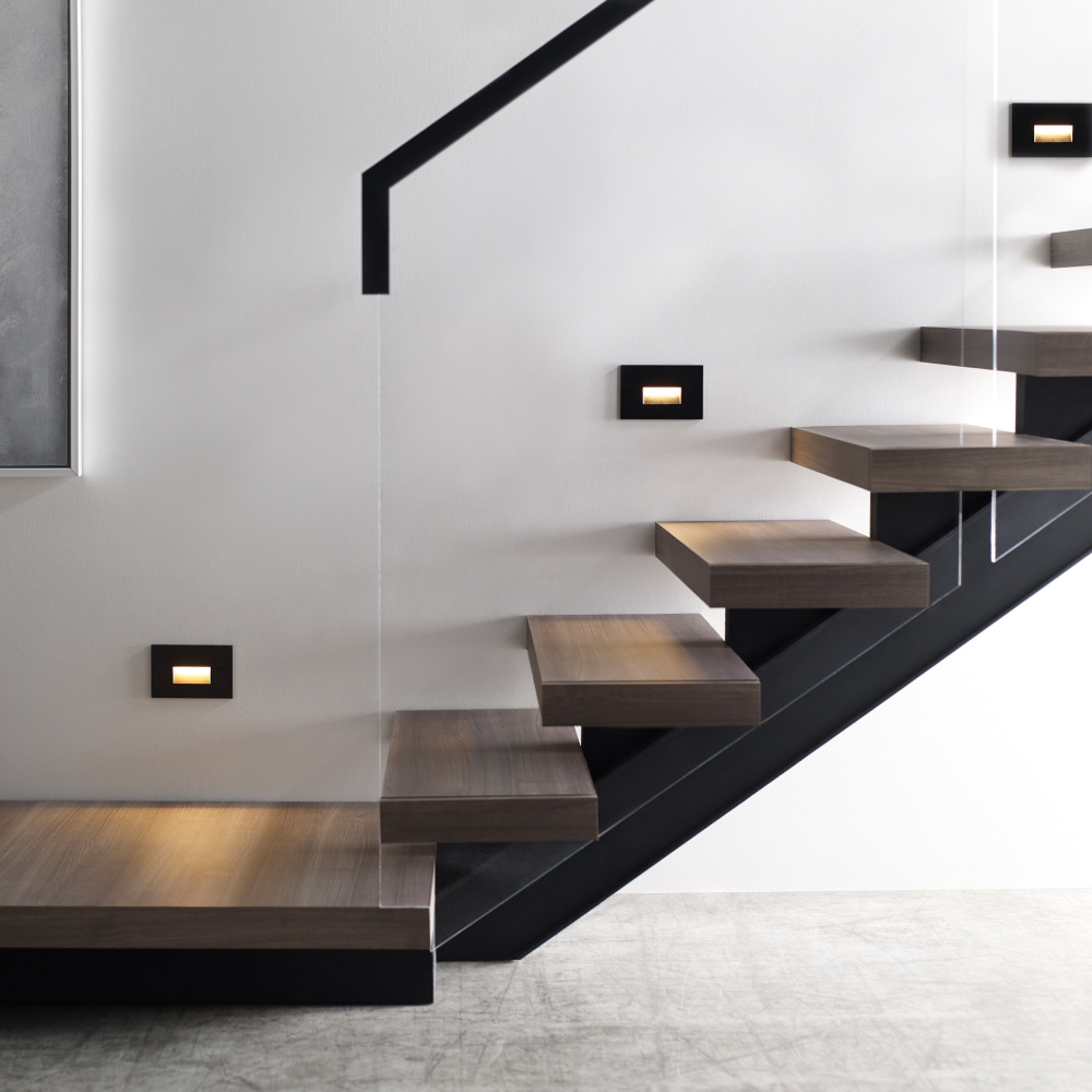 Ikon by Sean Lavin is an outdoor step light featuring a contemporary design with a minimized rectangular aperture that aims illumination downward to light stairs with minimal glare. Ideal for wayfinding and added safety after dark. The Ikon exterior step light features selectable CCTs (2700K or 3000K) and can be installed as a 120V fixture or as a low-voltage 12V fixture (remote low-voltage transformer required). The Ikon LED fixture is wet listed IP66 which makes it ideal for commercial applications as well as for residential use. Available in modern finish options.