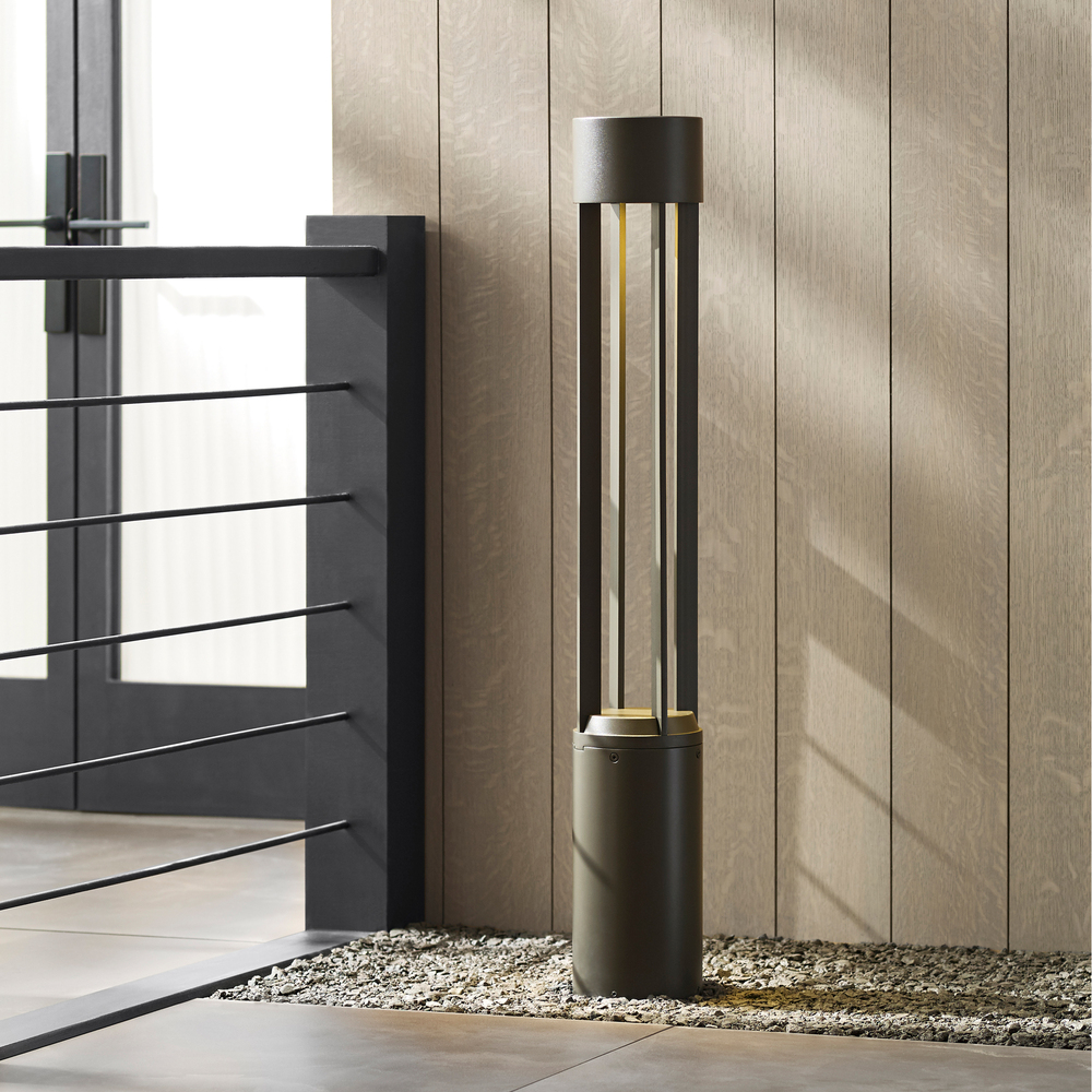 The Turbo outdoor LED bollard features a clean, cylindrical silhouette highlighted with decorative fins evenly spaced around the circumference which create beautiful geometric shadows when illuminated by the powerful LED light source shining down from the crown. The bollard offers a choice of optics with beam spreads of 20° or 40° to tailor the installation to each unique setting. Available in modern finish options. Both Turbo bollard and path lights feature UV stabilized acrylic lensing for added durability and stability. For 12V version, 12V Outdoor Transformer required, click here for transformer spec sheet