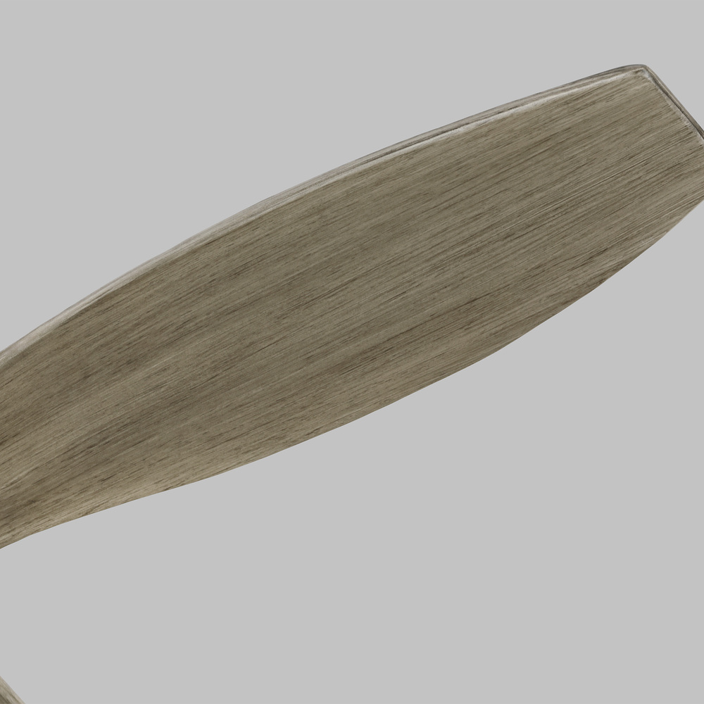 Modern, transitional, damp rated, 3 blade fan with specialty carved, light grey, weathered oak blades