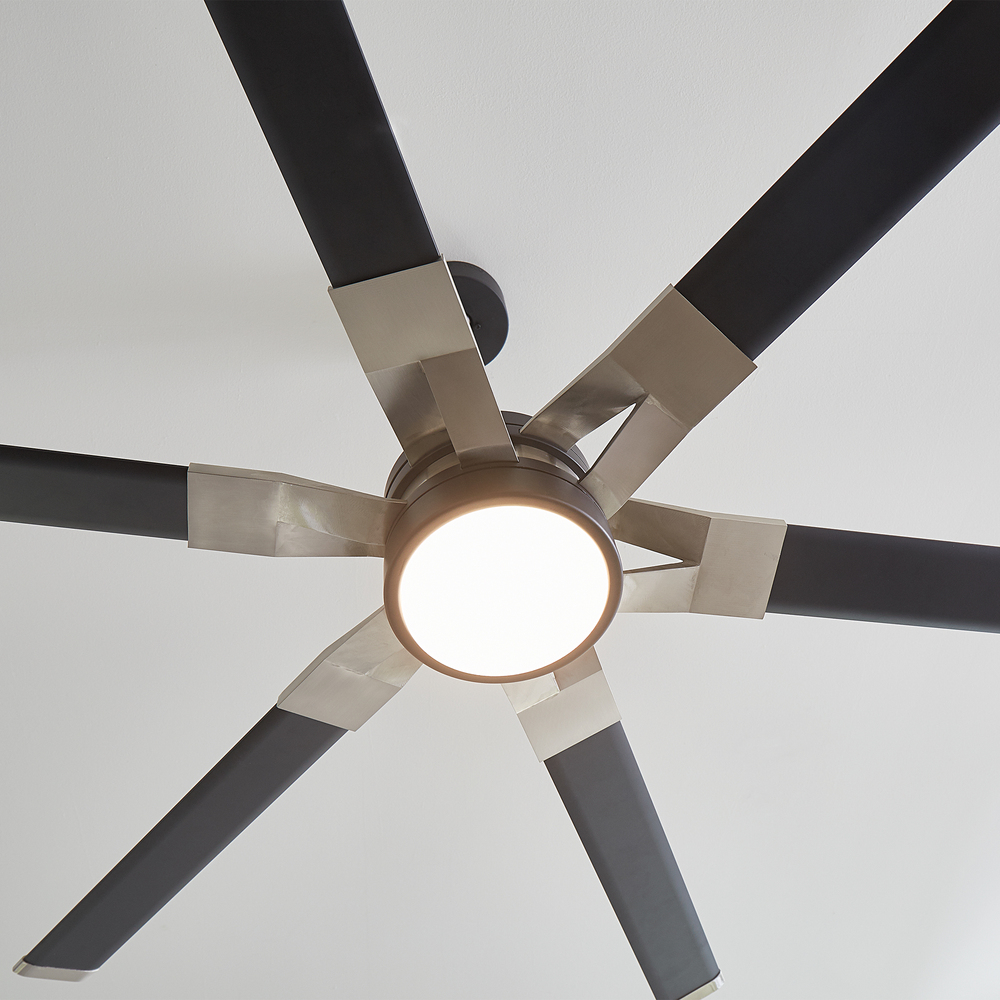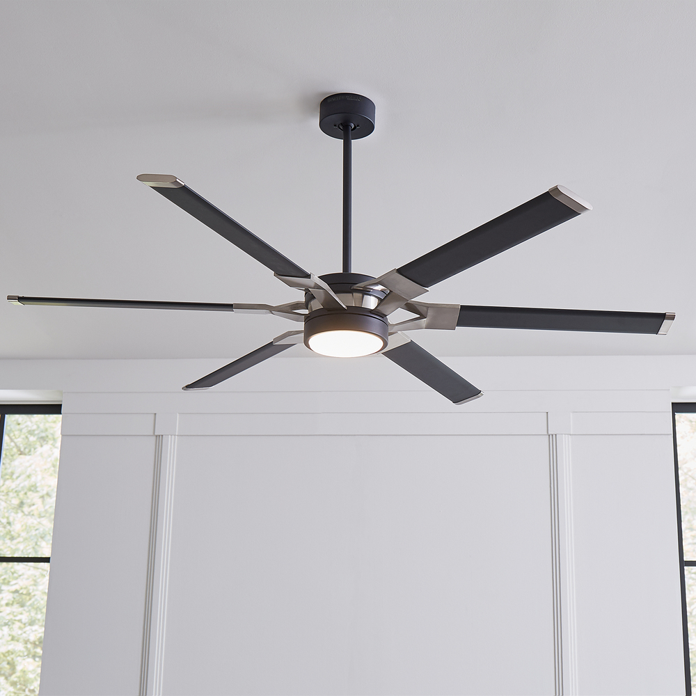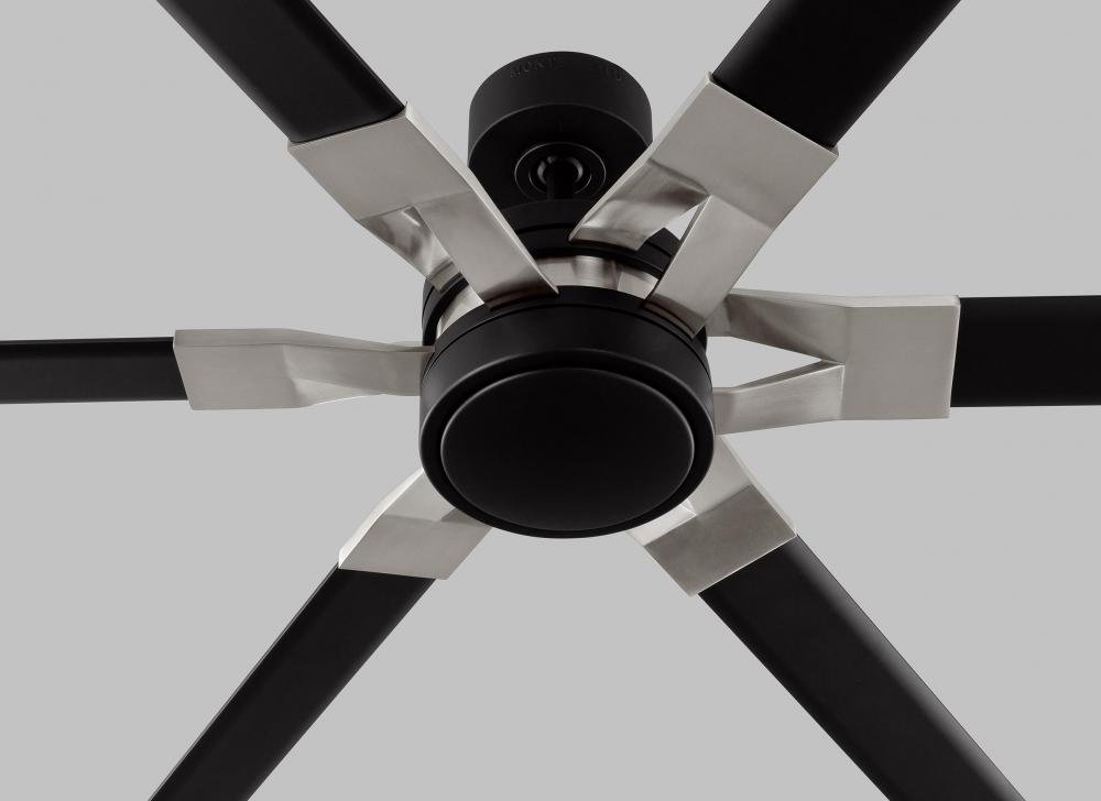 The Sean Lavin Loft 62 in Midnight Black features a 125.0 X 25.0 6 speed motor with a Thirteen degree blade pitch. With a unique split blade iron design, two-tone finish combinations and extruded aluminum blades, Loft is ideal for modern homes and commercial environments. The large-scale 96” fan has a powerful DC motor that uses minimal electricity, and a bright white energy-saving LED downlight. Circulate air and create a strong base of ambient light in your projects with Loft by Sean Lavin.