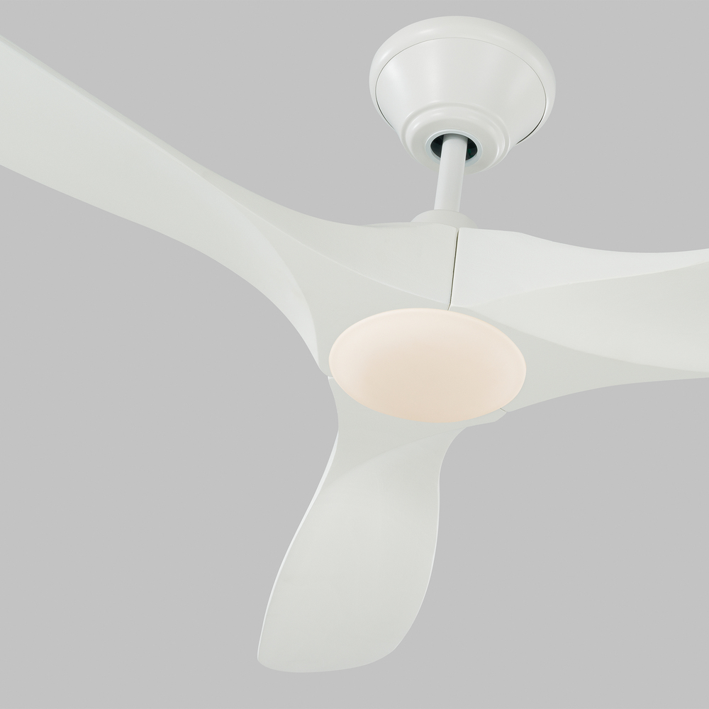 The Maverick 70 LED in Matte White features a 85.0 X 28.0 6 speed motor with a Thirteen degree blade pitch. The popular Maverick Max ceiling fan by is now available with an integrated LED light. This advanced LED technology is carefully designed and selected to consist of the highest quality LED chipsets for superior performance and reliability. With a sleek modern silhouette, a DC motor and super energy-efficiency, the Maverick LED ceiling fan from features softly rounded blades and elegantly simple housing. Maverick LED is available in 52, 60 and 70 inch blade sweep and a 3-blade design that delivers a distinct profile and incredible airflow for living rooms, great rooms or outdoor covered areas. It includes a hand-held remote with six speeds and reverse. All versions feature beautiful hand-carved, balsa wood blades. ENERGY STAR qualified. Maverick fans are damp-rated. A