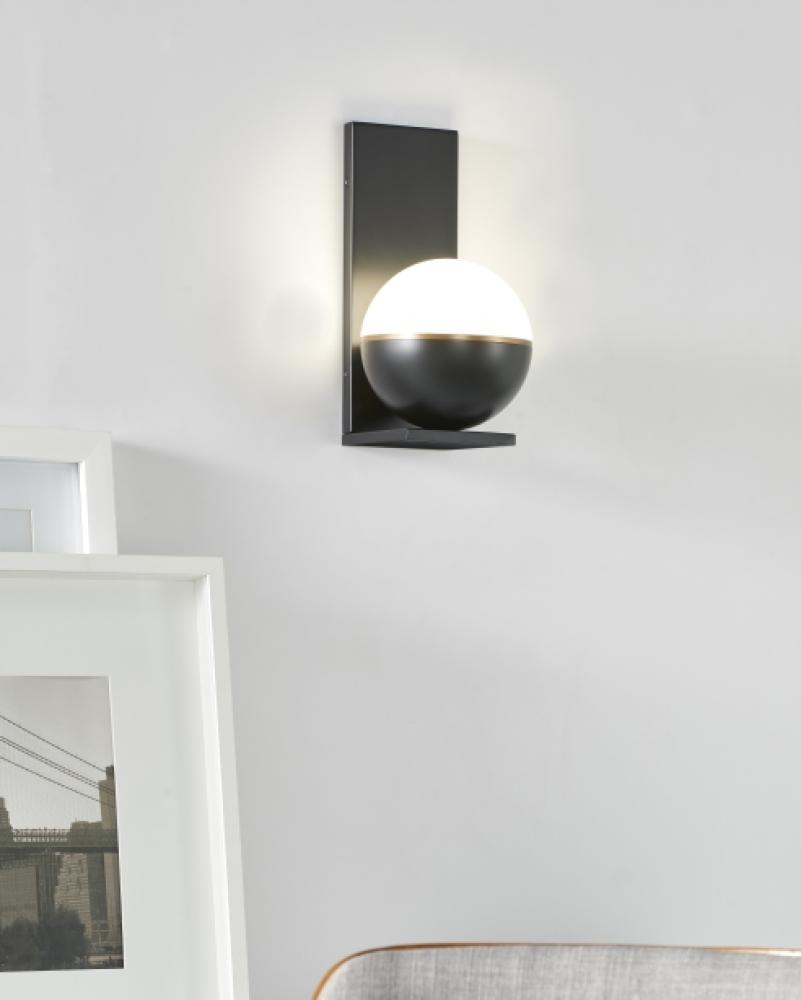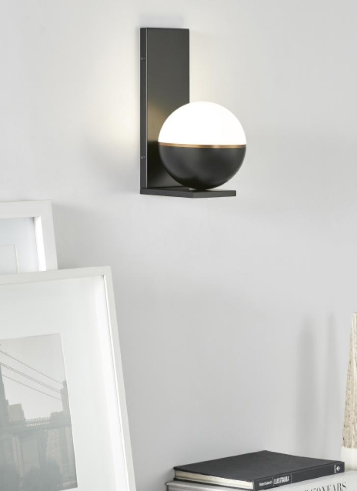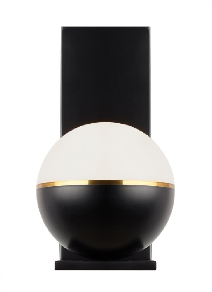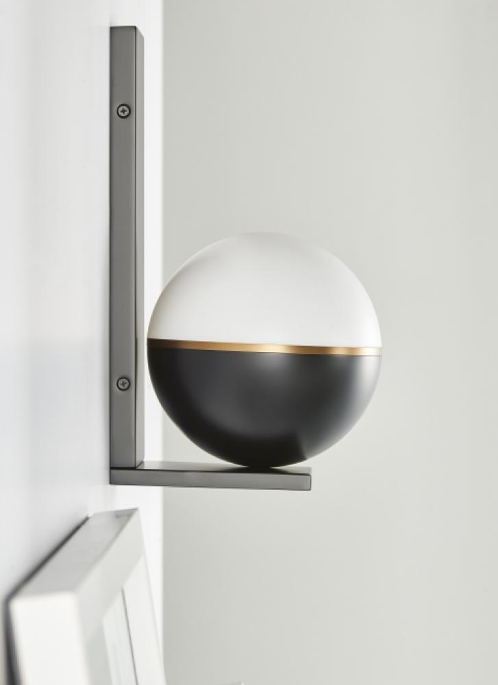 Inspired by mid-century design, the Akova LED wall sconce light by Sean Lavin elevates the simple sphere into an elegant contemporary statement. Distinctly divided into three unified regions, each fixture features a metal housing available in multiple on-trend color options that are briefly separated from an incredibly smooth acrylic diffuser by a complementary decorative metal band. At 7 inches in diameter, this wall sconce light has a distinct presence in the spaces it illuminates and can be used in combination with coordinating Akova Flush Mount and Pendants as accent lighting within a contemporary kitchen or dining room.